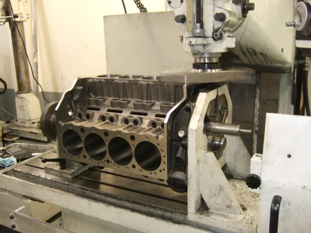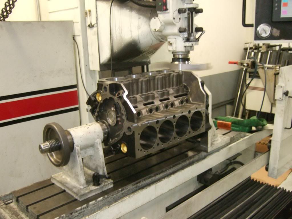 Updates: -Roller bearing 50mm cam tunnel is bored -Deck was not square (shocker) so they are squaring it up. He said he'll likely bring it down from 9.0225 where it sits now just to 9.000 and call it good. -Diamond hone up next -His assessment of the block is that he likes its water jackets, its priority oiling and he compares it so far to the Little M, so I liked hearing that We knew my Jesel shaft rockers would need some attention (new adjusters, maybe some rollers) but we did discover the intake is a 1.7 ratio (not 1.6 as advertised) and that's a good thing for cam design. 1.6 is exhaust as sold. We talked cams in detail and he is a big believe in these oversized base circle cams, either 50 or 55mm for SBC. He showed me a shelf Comp Cams Mopar cam with standard base circle next to one he designed and had cut with a monster base circle (don't know Mopar sizes) but the difference was staggering. And what he said that was really staggering was the larger one made 60 more hp on the dyno. No other changes. Same cam specs. Wow. I had no idea on that stuff. So I'm sold on the added expense (a few hundred bucks) for the larger base circle on mine. Done deal. He also would not let me take a pic of the 2 Mopar cams side by side. Trade secrets. :unibrow: I learned the "C" or Cleveland firing order is the same as the LS firing order (also called a 4 cylinder swap) and it's easier on the internals while making more power. He said that's why all or most of new modern motors use that firing order. He uses the 4-7 swap on tunnel ram setups. Mike is so cool and old school.. he has the same credit card machine from 1989 he said. If it ain't broke, don't fix it! It is huge like the phone Gordon Gekko was holding on the beach in Wall Street. :lol: Put the crank on the scale. Mike said weight don't mean nothin til it registers on his scale. :D http://i236.photobucket.com/albums/f...8/DSCF4094.jpg http://i236.photobucket.com/albums/f...8/DSCF4095.jpg http://i236.photobucket.com/albums/f...8/DSCF4098.jpg http://i236.photobucket.com/albums/f...8/DSCF4099.jpg |