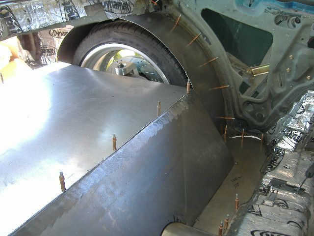 The trunk fab work continues guys. Got all the panels made and pre-fitted...well, uh...test fitted. However, the saying goes. Welding will begin shortly. But, before that the next thing to do is to put the design work on the panels with the bead roller. Some of the pics are in the sunlight because it was outside to move other cars around the shop and I wasn't gonna get the guys to pull the car inside for a couple of pics. But here are a few good one too.