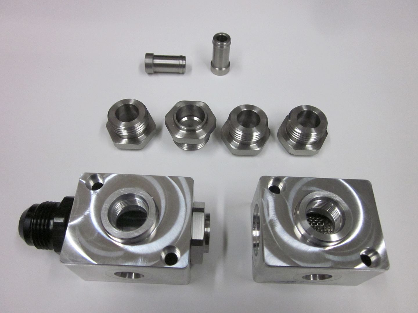 Dry sump oil tank distribution block it feeds oil to engine, it holds mesh filter, oil drain, & will be able to mount oil temp sensor.. & a few fittings to weld 3/4 stainless tubing.. Plus 1/2 barb fitting to weld to 3/8 tubing for the back of the intake for booster vaccum.. http://i1015.photobucket.com/albums/...n/IMG_1299.jpg And here is the idea of where it will be mounted.. http://i1015.photobucket.com/albums/...n/IMG_1300.jpg http://i1015.photobucket.com/albums/...n/IMG_1301.jpg |
