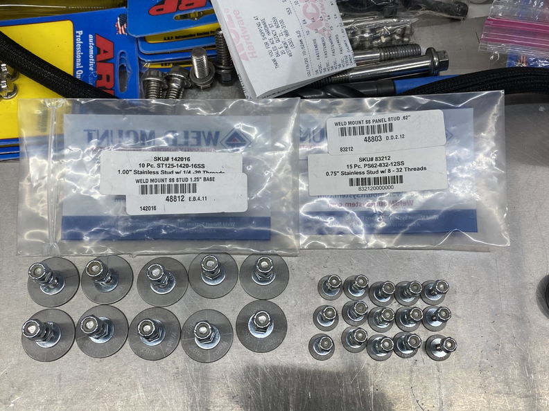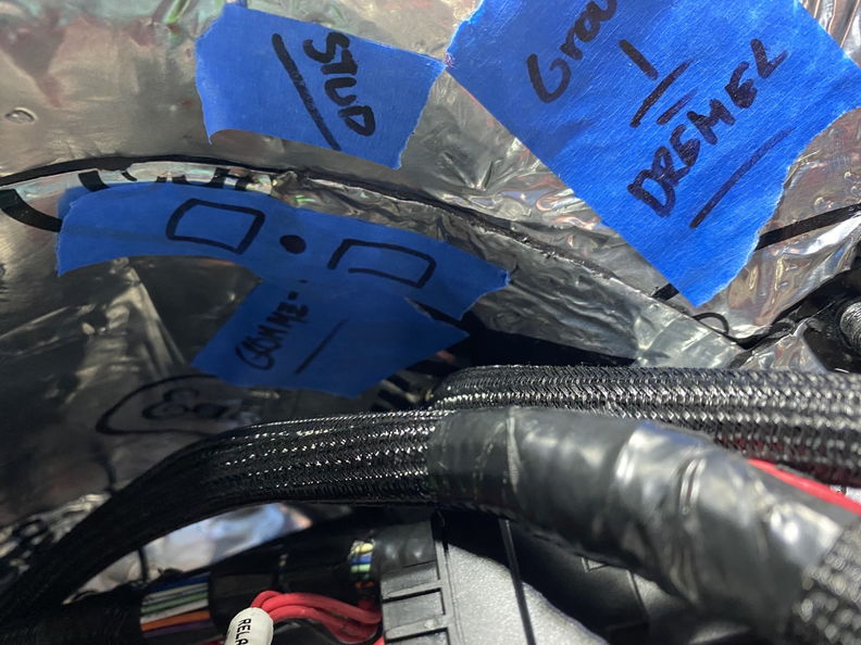 http://www.garagescene.net/_data/i/u...64df62b-me.jpg making a new hole. http://www.garagescene.net/_data/i/u...c645d2b-me.jpg Grommet installed and I promise I will clean up the DEI Boom Matt to make it look nice. http://www.garagescene.net/_data/i/u...fed2b23-me.jpg Back to the Holley Terminator wiring and I am hoping all of my planning pays off with all of the hose routing and wiring. Confirming the location of where I want to mount the relays. Once I feel confident I will install the "Weld Mounts" which are a stud that are glues in with panel bond. http://www.garagescene.net/_data/i/u...a74a6c5-me.jpg http://www.garagescene.net/_data/i/u...a74a6c5-me.jpg These are going to be fun to put the washer, lock washer and nut on. http://www.garagescene.net/_data/i/u...95461f6-me.jpg http://www.garagescene.net/_data/i/u...3830f18-me.jpg I think this is the final. http://www.garagescene.net/_data/i/u...0c98fb1-me.jpg More notes on the blue tap. http://www.garagescene.net/_data/i/u...38490fa-me.jpg |