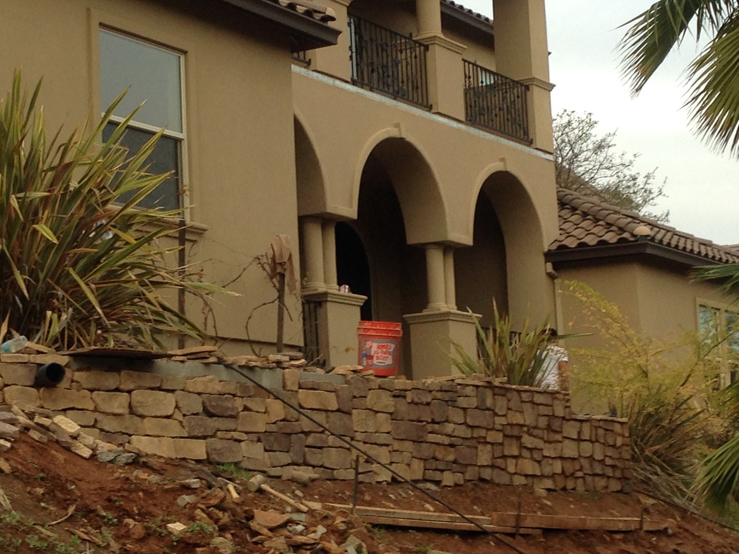 Couple block walls I built that are now covered with stone and ready for irrigation and plants to go in