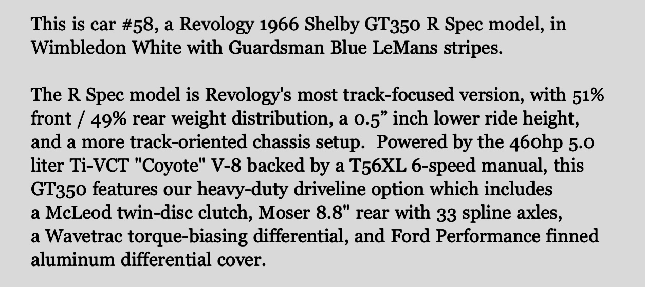 I like the owner’s comment about how well it drives with the RS chassis. |
