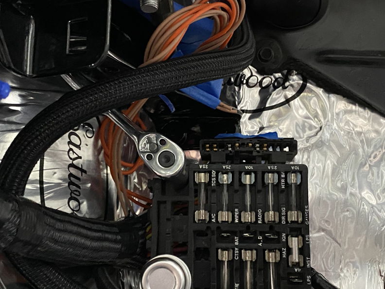 I spent a little time routing the wires a little better and securing them in place. http://www.garagescene.net/_data/i/u...110ce68-me.jpg Removing the paint from the ground area's http://www.garagescene.net/_data/i/u...cc420ce-me.jpg Yep another note. http://www.garagescene.net/_data/i/u...2cd45f2-me.jpg It's kinda funny looking at this picture as I have been searching for the brake switch. Apparently it's on the harness. (yes I am going to go look at this post) http://www.garagescene.net/_data/i/u...02e9da8-me.jpg I put the steering wheel back on so I had something to grab when I am trying to get out from under the dash. http://www.garagescene.net/_data/i/u...6dacb61-me.jpg Picked up some new stainless steel bolts for the AAW fuse box. http://www.garagescene.net/_data/i/u...2ce1940-me.jpg and a Chunky Bar (looks like I am starting a trend here) http://www.garagescene.net/_data/i/u...a3133b3-me.jpg Need to trim it to my desired length. http://www.garagescene.net/_data/i/u...fe70e51-me.jpg I have saved this little screw driver for years and it has finally has been put to use. http://www.garagescene.net/_data/i/u...6ff24e6-me.jpg Since my girls are out I had to become a little creative. http://www.garagescene.net/_data/i/u...c3db5c1-me.jpg pulled out another tool that I seldom use. Yep it's ratcheting. http://www.garagescene.net/_data/i/u...3c88b88-me.jpg http://www.garagescene.net/_data/i/u...e5fb5ba-me.jpg Firmly mounted. http://www.garagescene.net/_data/i/u...e40a7db-me.jpg |