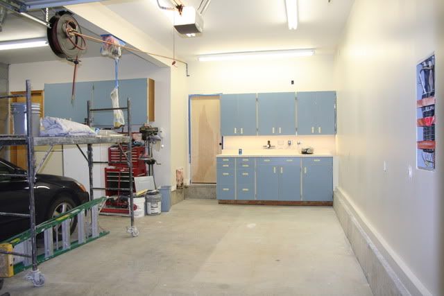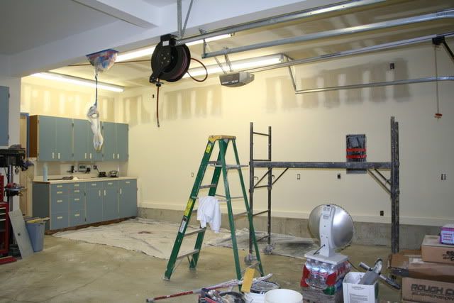 http://i235.photobucket.com/albums/e...e/DSCF1490.jpg After a lot of thought I decided to move the uppers to the other side of the garage, move a couple base cabinets to the storage room/shed that's behind the third stall, and completely reconfigure my work area. Oh and move the sink and cut a door into the storage room where the sink cabinet used to be. I had to do a ton of mud work on this big wall as I had cut it up quite a few times over the years adding electrical. For the most part I skimmed it after running all the joints and patches. It turned out nice. http://i235.photobucket.com/albums/e...e/IMG_2832.jpg http://i235.photobucket.com/albums/e...e/IMG_2836.jpg |