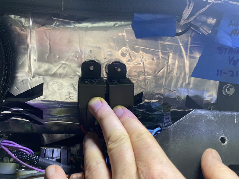 fittings. I am very happy they made improvements as these are much better. http://www.garagescene.net/_data/i/u...d42a9dd-me.jpg Prior to painting the firewall I added one new hole for the power wires for the Holley Terminator system. They made it clear in their instructions that these wires need to be separated from all other wires in the car. So I moved them over to the passenger side of the Kick Panel. ps Remember where these wire come out. http://www.garagescene.net/_data/i/u...3b2e6f4-me.jpg When I went to install the new Vintage Air fittings into the existing holes the new fittings hit the Anvil Inner fender. I starred at it for at least 20 minutes and decided to put the old fittings back as the new ones didn't work. Hours later after lunch I took a second look and I move the Vintage Air fittings over one hole. I as was shocked it actually fit like I had planned it. Talk about dumb luck. http://www.garagescene.net/_data/i/u...f59eb61-me.jpg I sourced "machined washer" from Grainger and installed them on the back side to act as washers. http://www.garagescene.net/_data/i/u...82f2857-me.jpg I decided to clean out all of the metal shavings that where inside the kick panel. So I got out my trusty magnet and started fishing for metal shavings and I actually enjoyed this task. http://www.garagescene.net/_data/i/u...05ed449-me.jpg Test fitting the new lines and I am very happy how they look coming off the firewall. http://www.garagescene.net/_data/i/u...c946faa-me.jpg I am going to be moving this switch to location where I can service it if needed. http://www.garagescene.net/_data/i/u...2fe2ed6-me.jpg I am not liking how the AC lines look under the battery tray so I am going to try to figure out a new routing. http://www.garagescene.net/_data/i/u...51e9fff-me.jpg I don't like this either so I will be adding a line clamp to keep this line safe from harm as there is a bolt poking through the core support directly into this line. http://www.garagescene.net/_data/i/u...48ad637-me.jpg http://www.garagescene.net/_data/i/u...d392d86-me.jpg http://www.garagescene.net/_data/i/u...d159477-me.jpg Flipping the line put the "Switch" in a much better locations. http://www.garagescene.net/_data/i/u...d642cd3-me.jpg http://www.garagescene.net/_data/i/u...833f2df-me.jpg Shadow is back. http://www.garagescene.net/_data/i/u...7a0e937-me.jpg |