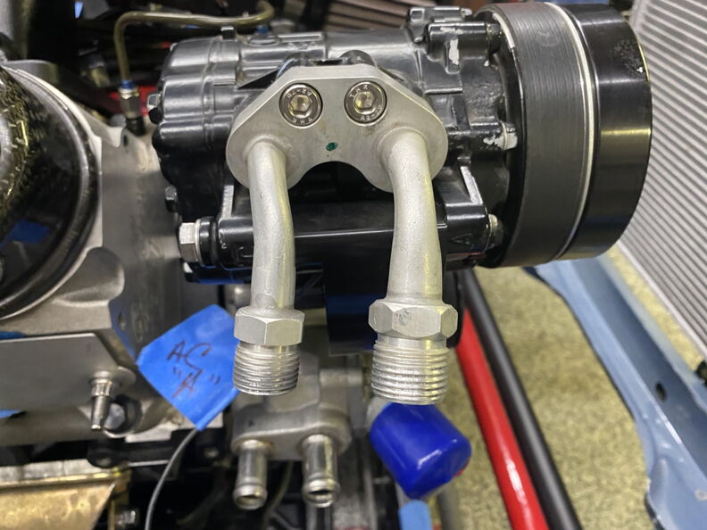 http://www.garagescene.net/_data/i/u...9cdf97a-me.jpg I am looking for area's that need to be trimmed for better clearance http://www.garagescene.net/_data/i/u...b11d9f2-me.jpg Yet another while I am here moment. These two relays are for the Vintage air and before they were sitting on the top of the unit. By mounting them I will be able to access them if there is ever an issue. http://www.garagescene.net/_data/i/u...a9eec23-me.jpg So I glued in a couple more Weld-Studs as this will be their new home. http://www.garagescene.net/_data/i/u...8cde3f4-me.jpg Next up is finding a replacement for the fitting on the compressor. http://www.garagescene.net/_data/i/u...b3c2779-me.jpg So it's off to Midwest Hot Rods to see what they have in stock |