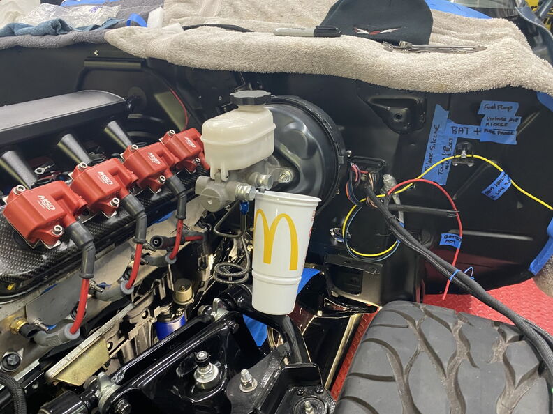 It's nice to see the Billet Specialties Wheel back on the car. At some point I need to find replacement tires for the car as these tires have http://www.garagescene.net/_data/i/u...37faa50-me.jpg First up is to find a good location for the hard line tab. In order to remove the clip off i needed to secure the line in my Grandfathers Vice. I have to thank my buddy Ben for building the cart and the vice mount so I can move it around in my garage. http://www.garagescene.net/_data/i/u...f2044fc-me.jpg Bag & Tag everything is my moto and make sure you take pictures of the bag so you can easily go back to your dated pictures and figure everything out. http://www.garagescene.net/_data/i/u...893de64-me.jpg As you can see this location is my 2nd attempt as the first one was a complete fail. http://www.garagescene.net/_data/i/u...9237123-me.jpg Time to secure it with Clear Gorilla Tape. http://www.garagescene.net/_data/i/u...211cfa2-me.jpg http://www.garagescene.net/_data/i/u...8ed67a6-me.jpg Drivers Side and yes the 1st try failed. http://www.garagescene.net/_data/i/u...b0274d4-me.jpg http://www.garagescene.net/_data/i/u...da4c407-me.jpg Yes I have issues and you should have seen me hanging over the car and holding on to the tire rack to get this picture. I wanted to make sure the brackets were symmetrical and taking the picture allowed me to look at it better. http://www.garagescene.net/_data/i/u...9b9d1b8-me.jpg BTW the inner fenders were removed and test fitted to make sure this location works. |