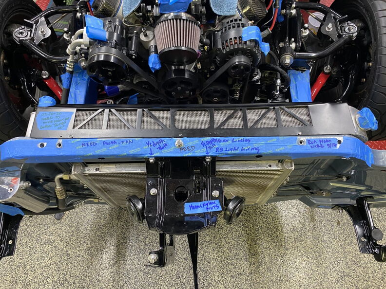 http://www.garagescene.net/_data/i/u...0273544-me.jpg Time to mount the Radiator ... http://www.garagescene.net/_data/i/u...6b03e22-me.jpg So i need to lower the radiator down so out came the floppy disk. http://www.garagescene.net/_data/i/u...d988a15-me.jpg While I am here I decided to fit the old trans lines and see if I can come up with something a little cleaner looking. http://www.garagescene.net/_data/i/u...edd3423-me.jpg My favorite line that Kenny did. http://www.garagescene.net/_data/i/u...45d9041-me.jpg Fitting the Fan Shroud. http://www.garagescene.net/_data/i/u...f547448-me.jpg The shroud also doubles as a way yo secure the radiator. http://www.garagescene.net/_data/i/u...07affbb-me.jpg http://www.garagescene.net/_data/i/u...b3e34e3-me.jpg Plan "B" Okay new lower rubber mounts. http://www.garagescene.net/_data/i/u...f8d39fc-me.jpg Time to remove these tabs. http://www.garagescene.net/_data/i/u...fa5aef4-me.jpg http://www.garagescene.net/_data/i/u...616148c-me.jpg http://www.garagescene.net/_data/i/u...6925bbf-me.jpg and there gone.... http://www.garagescene.net/_data/i/u...7be49d4-me.jpg Fitting the Anvil Radiator Close Out. http://www.garagescene.net/_data/i/u...9d475db-me.jpg More Notes http://www.garagescene.net/_data/i/u...5a8078d-me.jpg |