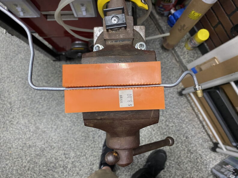 Working on the line from the Drivers Side to the Passenger Side. I did purchase a factory line and modified it to work with my new layout. Which meant that I needed to straighten some of the bends & curves.