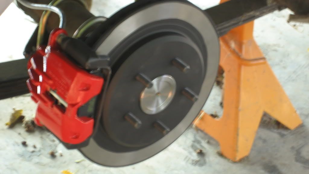 I had debated for a while whether to go with a nice set of slotted rotors (DBA 4000) for my C5 kit, or to run a set of inexpensive rotors. Some guys over at corvetteforum.com swear by high-end rotors...yet others insist that if you're running trackdays, the stock replacements can take the punishment. Well, I ended up going the cheaper route this time. I purchased Napa "Ultra Premium" rotors (86700, 86701, 86702, 86703). Here are a couple mock-up shots for the front and rear: http://i207.photobucket.com/albums/b...o/IMG_3452.jpg http://i207.photobucket.com/albums/b...o/IMG_3461.jpg The hats of the front rotors came painted...nice. But the rears werent. So I rattled on some high temperature paint. Here's my taping of the approximate swept portion; I'm trusting that the pads will take off any excess: http://i207.photobucket.com/albums/b...o/IMG_3423.jpg Of course, it's not a car weekend without encountering some problems. I ran into an interference problem when I was mocking the passenger side rear rotor and the abutment bracket. the inboard face of the rotor scrubbed against the abutment bracket. Here's what I mean: http://i207.photobucket.com/albums/b...o/IMG_3443.jpg After many measurements with the calipers left and right, I determined that the welded flange of my axle housing is inboard by 0.07" compared with the driver side (which was fine rotor/abutment wise). After 3 hours, I had whipped up a shim to go behind the rotor: http://i207.photobucket.com/albums/b...o/IMG_3441.jpg continued... |