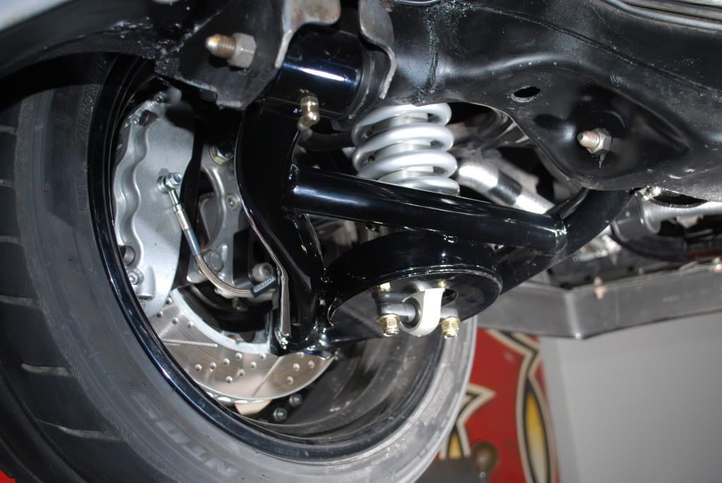 here are a couple of the rear. the package includes the Trailing arms with Articulink joints, delrin busoings adjustable uppers and lowers with adjustment for antisquat and instant center. the coilovers are Ridetechs this set are the non adjustable ones that we are testing out. Protouring adjustable sway bar as well. http://i1235.photobucket.com/albums/...odyarms019.jpg http://i1235.photobucket.com/albums/...odyarms012.jpg http://i1235.photobucket.com/albums/...odyarms002.jpg And some of the front. this package uses the Speedtech new Tubular arms AFX Spindles, and ridetech coilovers, as well we have done a front chassis/steering box brace. The new Protouring hiclearance sway bar. http://i1235.photobucket.com/albums/...odyarms022.jpg http://i1235.photobucket.com/albums/...a/DSC08964.jpg http://i1235.photobucket.com/albums/...odyarms028.jpg Any Questions let me know |