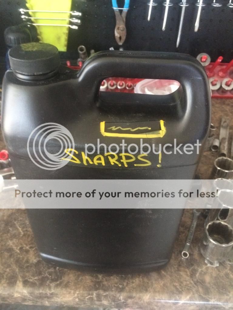 Just use an old coolant jug and cut a flap in it, MARK what it is and you have a safe containment for blades or other small sharp materials. http://i594.photobucket.com/albums/t...pssenookup.jpg |