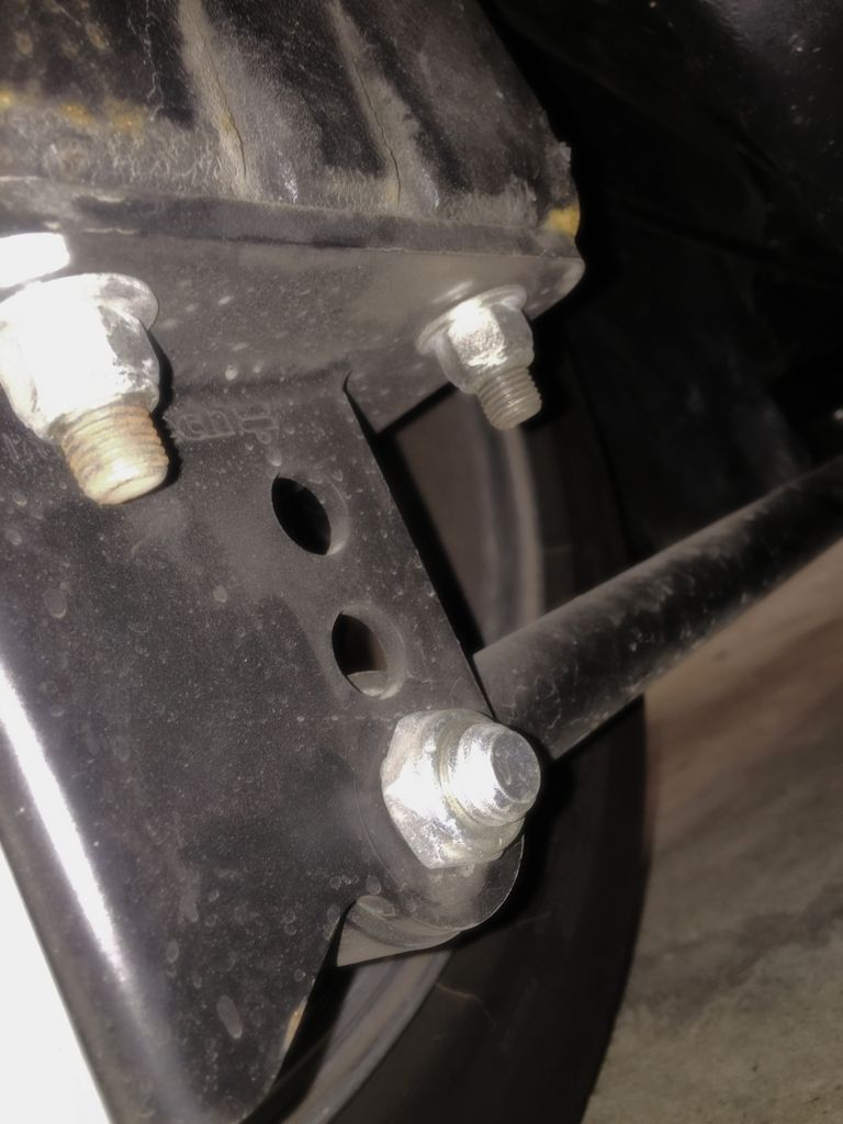That block actually can't go up or down. I'll try and get a better pic tomorrow. The lower control arm can move up or down, but it will change the angle of the rear end. Here's another pic I had, but it doesn't really show much else other than the old tires.
