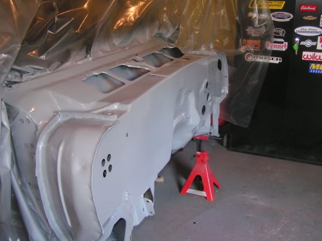 I got the subframe back on. This time for good!!!! I also decided to polish the firewall again with swirl remover/polish. Hard to tell in the pics, but it did make a difference. You may notice that one of the front shocks are missing. That's because the ones I had in there were for a small block and now that I'm going with the LS conversion, I need some lighter ones. I'm also going a bit shorter as there was no room for adjustment on these ones. Onto the pics: http://i222.photobucket.com/albums/d.../PICT00315.jpg http://i222.photobucket.com/albums/d.../PICT00324.jpg You can see where I was practicing before I painted :D http://i222.photobucket.com/albums/d.../PICT00357.jpg |