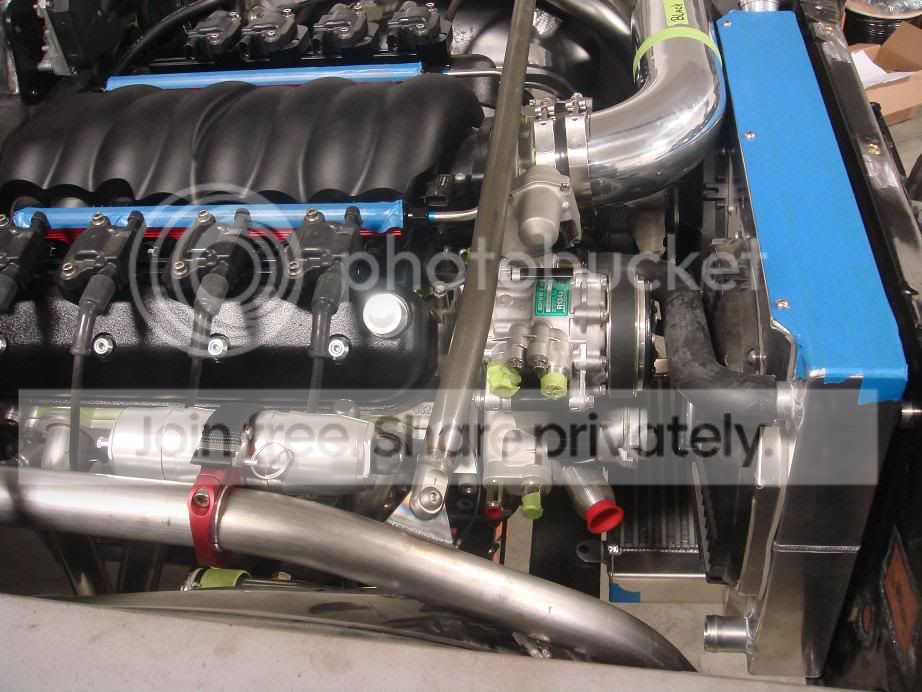 I noticed in your second picture that your using regular steel braided -6 line coming out of the high pressure side on your power steering pump. CHANGE IT !!!! That hose isn't designed for power steering. You need to change it over to a steel braid teflon inner lined type hose. The regular steel braid is not designed for those types of pressures. The steel braid hose has about a 1300 psi working pressure. The spikes in pressure on the power steering system will cause it to burst in a short time and the heat it generates isn't good for it either. Hope this helps. Mark Quote: