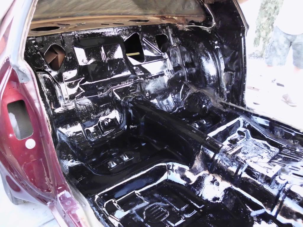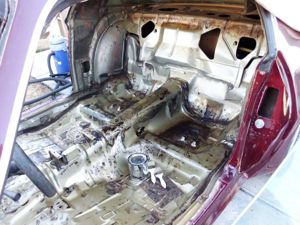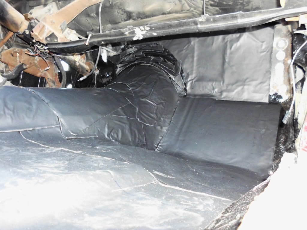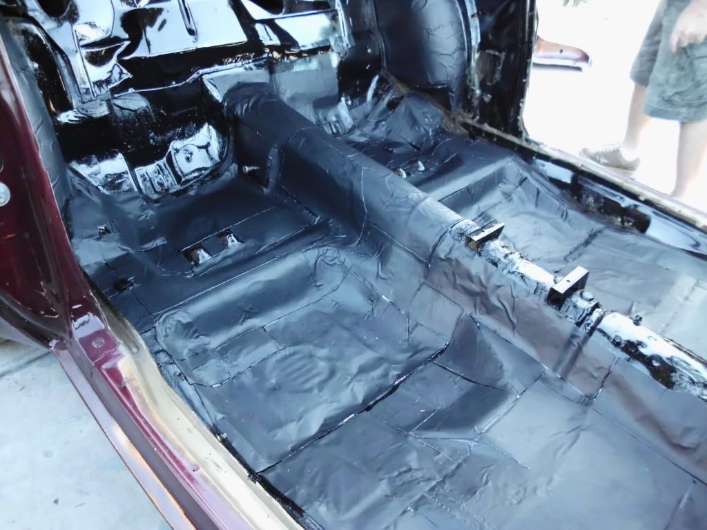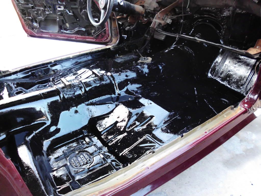 Finished stripping out the old carpet and tar paper today. That was quite the chore. We also put down a coat of POR-15 to give the sound deadening insulation a good foundation to stick to.