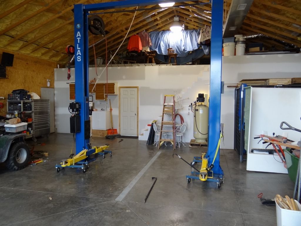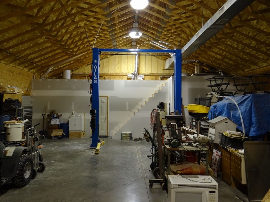 It started off at a 36x50 full concrete foundation, stick framed outbuilding built back in 2001. http://img.photobucket.com/albums/v3...otos0011-1.jpg The first couple of years while I was absorbing the initial build costs, it was basically a boat and yard equipment storage facility. http://img.photobucket.com/albums/v3...ragemahal5.jpg I did use spray in foam insulation and hung a 4 ton heat pump from the trusses to heat and cool the space. About 3 years ago now I guess I finally got to add a two post lift to the shop. http://img.photobucket.com/albums/v3...01116-1921.jpg Then I had to change things up and built an apartment in the back of the shop for my Dad to live in. http://img.photobucket.com/albums/v3...s/DSC01529.jpg I was able to put a loft up above the apartment to gain back some of the storage I lost by the addition. this picture was taken from up in the loft. What a mess... http://img.photobucket.com/albums/v3...s/DSC01530.jpg I also had to move the lift back about 10 feet. did that project by myself without taking the lift apart. Yes, there were a couple of pucker moments...at one point my Dad went back into his apartment and said "I can't watch this". http://img.photobucket.com/albums/v3...h/DSC01577.jpg http://img.photobucket.com/albums/v3...h/DSC01578.jpg http://img.photobucket.com/albums/v3...h/DSC01583.jpg http://img.photobucket.com/albums/v3...h/DSC01582.jpg I now have a lot of pictures of stuff I'm working on in the shop, but none show much of the actual shop itself. It's actually pretty clean right now and will take some updated pictures of it in it's current form soon. What I'm struggling with now is finding and setting apart a "dirty work" space where I can put my welding, cutting and grinding tools and do my dirty work in to try to keep the rest of the shop halfway clean. The lift is a fantastic tool, I use it all the time. I don't think I'll ever be without one again. I need more cabinets to store away the parts and stuff I just can't part with and I need to pare down some of the yard equipment that I just don't use that much anymore to create more space. And lights...I need WAY more and better placed lights. Painting the walls white might help with light as well. Eventually I'll get it all set up like I want, but lately I've been doing more work in the shop...than on the shop...which is okay too. |
