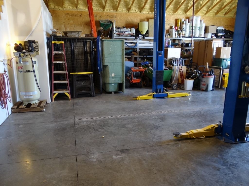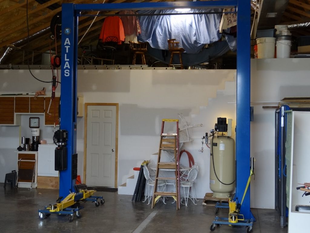 Here's a couple picture of my ongoing garage project. It’s adjacent to my house and it’s 50’x100’ with (4) 12’x14’ roll up doors. There is also a parts mezzanine that sits on top of the cecilng for parts storage measures 12’x100’. Now I’m working organizing and outfitting the shop. The most recent addtions are the 2 post lift, compressor and air line plumbing as well as the 220 plugs for the welders.