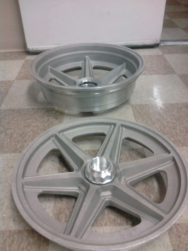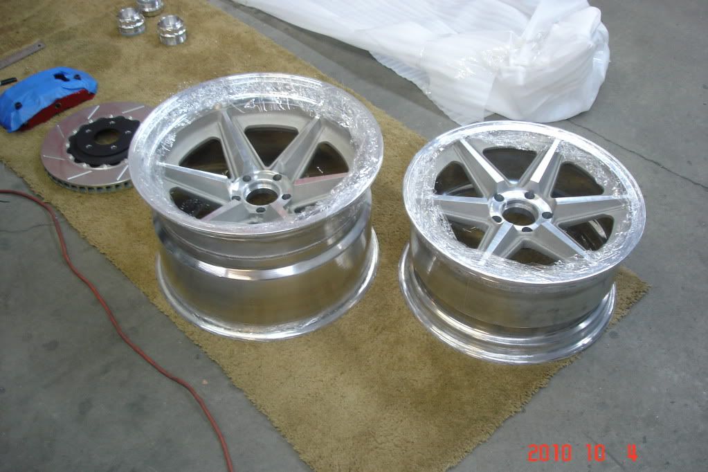 Here's a shot of the wheels with the back hoops welded on and the tops of the spokes machined. They look killer and they're still not done. http://i219.photobucket.com/albums/c...Mustang021.jpg |