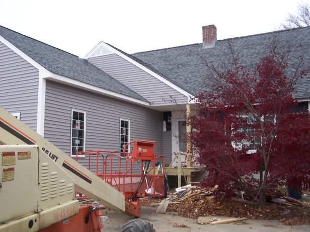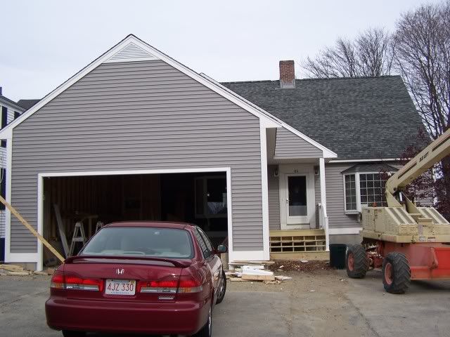 Here are some pictures. http://i172.photobucket.com/albums/w...revinyl002.jpg http://i172.photobucket.com/albums/w...revinyl001.jpg http://i172.photobucket.com/albums/w...revinyl004.jpg Here are some from today They put in the gable end vents and vinyled the top peak and the side near the front door. and did some work on the porch cieling. http://i172.photobucket.com/albums/w...gress003-2.jpg http://i172.photobucket.com/albums/w...gress002-3.jpg http://i172.photobucket.com/albums/w...gress004-3.jpg http://i172.photobucket.com/albums/w...nnished001.jpg Here's what it looked like at the end of the day. http://i172.photobucket.com/albums/w...nnished002.jpg |