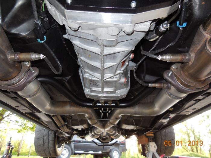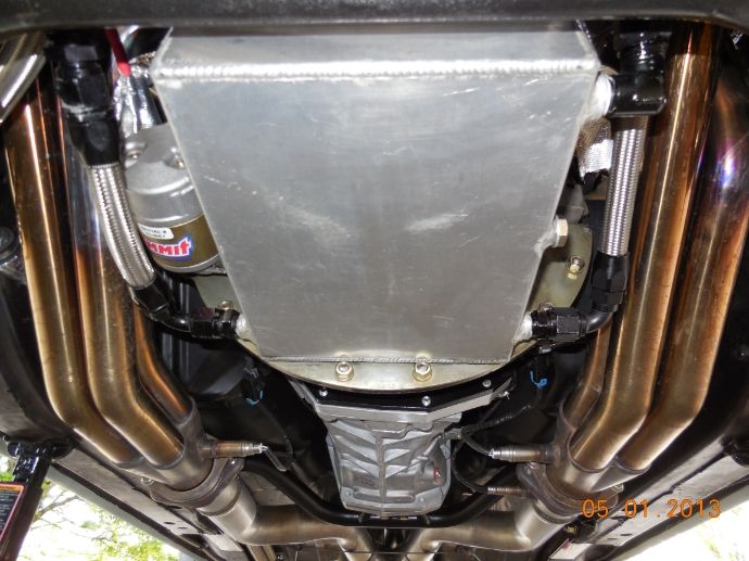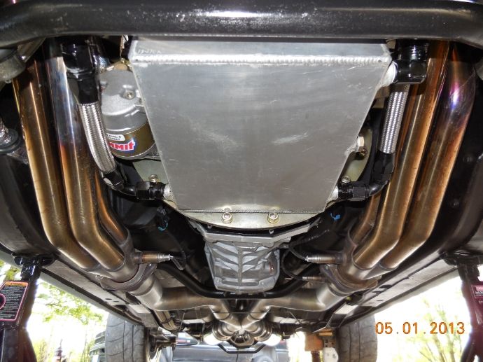 http://i1048.photobucket.com/albums/...psd0b8d0b3.jpg Here are some shots showing how I routed the plumbing underneath. http://i1048.photobucket.com/albums/...psb41e2139.jpg You can see the plumbing in the left side of pictures tucked up next to the frame rail and sub frame connectors. http://i1048.photobucket.com/albums/...psbe8e308e.jpg I also up-sized my exhaust to 3" all the way back for the new engine. I bought some mandrel bent tubes and had some tubes custom made... then fit and welded the tubes. This was my first time to do my own exhaust. http://i1048.photobucket.com/albums/...ps0d079873.jpg These shots are from the back of the car looking forward... the oil lines go up into the trunk and attach to the oil tank. http://i1048.photobucket.com/albums/...ps218726a1.jpg http://i1048.photobucket.com/albums/...psd4f052a5.jpg http://i1048.photobucket.com/albums/...ps6f6d5bbc.jpg I ran the oil lines up above the new cross member that came with the T56 Magnum... this worked out good to keep the lines away from the exhaust. http://i1048.photobucket.com/albums/...ps4f581e9f.jpg |