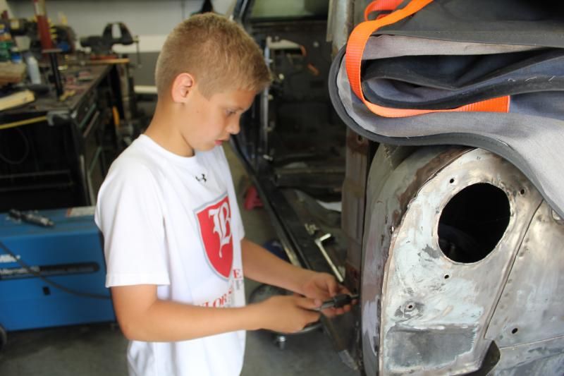 http://i115.photobucket.com/albums/n...psb868d1d5.jpg http://i115.photobucket.com/albums/n...psd63e1e2b.jpg http://i115.photobucket.com/albums/n...psd50351e0.jpg Had a little help on Sunday after the quarter was off. Had to get to the wheelwells. Of course, there was seam sealer on the inside. Taught my son Cam how to use a needle scaler. http://i115.photobucket.com/albums/n...ps23f47c06.jpg http://i115.photobucket.com/albums/n...ps91ccca08.jpg The concentration was amazing. http://i115.photobucket.com/albums/n...pseabc9921.jpg Still need an answer on what to do about the inside of the quarter. What do I need to put on the rusted portion. Yes, I did get ear protection for him. http://i115.photobucket.com/albums/n...ps20a547ca.jpg |