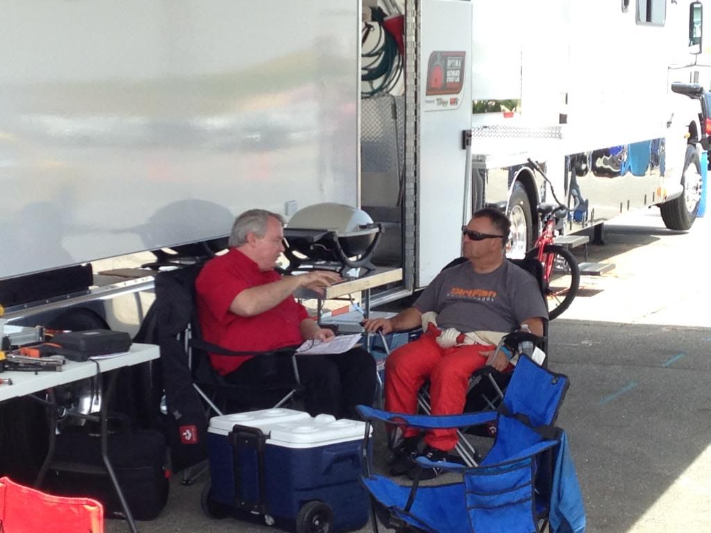 Met Ron for the first time at the track. Very nice guy that seems to really enjoy helping others gather the skills and data needed to go faster. Weld was bitching about the car not handling right. Ron digs out his durometer and shows Greg a tire that is hard as a rock. They change tires and Weld is happy again. Anybody wanting to advance in race car knowledge should be able to learn something from Ron. I really enjoyed the fact that Greg was bugging Ron all weekend instead of me.