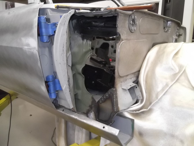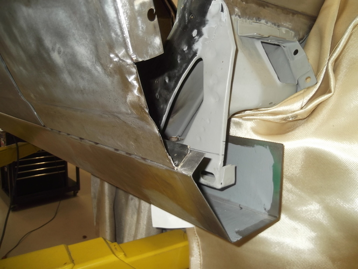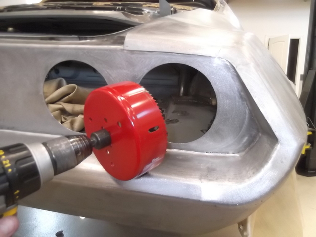 As you can imagine, a 5 1/2 hole saw is a monster to hang onto even at low speed. I did weld a 3/16" plate behind the tail panel so the pilot bit had something to guide it.