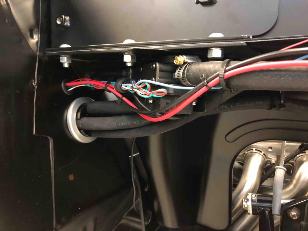 Stopped by the shop today to check out progress on the Nova and work through some questions on wiring with Kurt and his team. They’re nearly finished with the wiring, and doing a great job of routing the wiring and plumbing neatly and out of sight. A/C, heater hoses and heater control valve all hidden under the passenger inner fender well. The heater hoses and A/C hoses that are shown in the pictures routed into the engine compartment aren’t yet cut and fit to the water pump and A/C compressor. Once those are fit, we will secure those hoses and route them more neatly into the engine compartment.