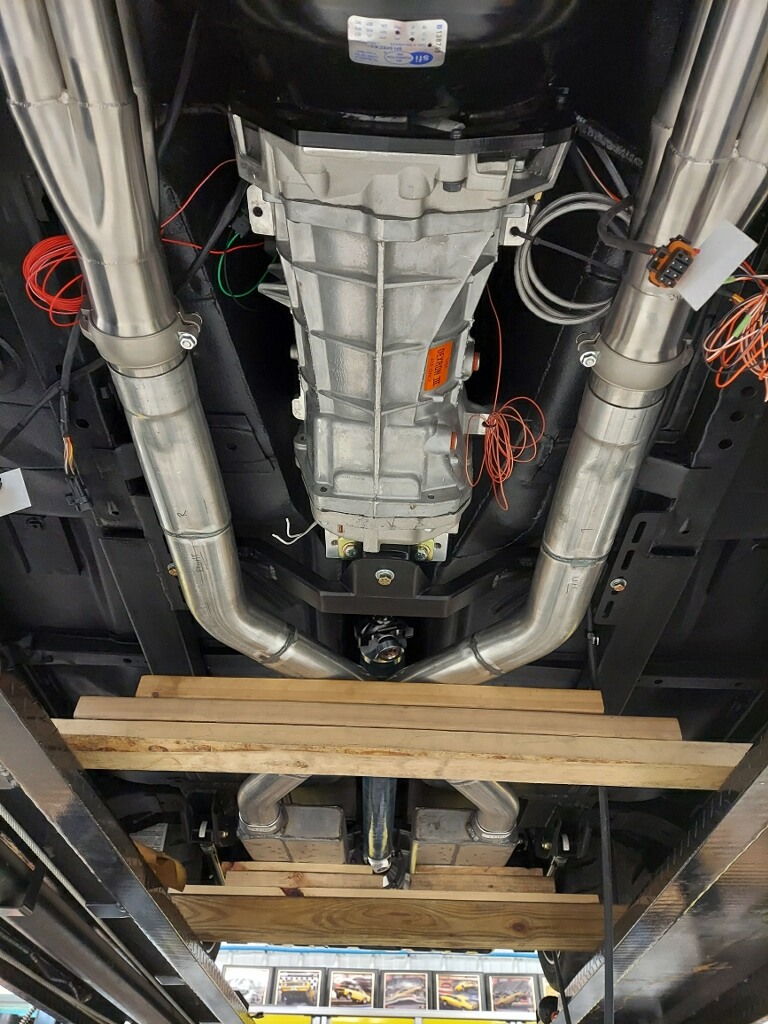 Attachment 72842 Attachment 72843 Motor and trans installed. Kurt also made a custom bracket to mount the Dominator ECU up under the dash in a location that allows decent access to the various connectors that plug into the ECU. https://uploads.tapatalk-cdn.com/202...f309d960dd.jpg https://uploads.tapatalk-cdn.com/202...1257313d5a.jpg I provided Kurt with template for additional wires and pin locations for each that needed to be added to the Dominator wiring harness (e.g., output for PWM control for fans, input for A/C compressor turning on, etc) as well as the digital dash wiring harness (turn signals, oil temp, power steering temp, high beam indicator, virtual switch for driving lights, etc.). Guys got most of those patched in as well. https://uploads.tapatalk-cdn.com/202...301fad72b8.jpg https://uploads.tapatalk-cdn.com/202...89335d7a4a.jpg Rear bumper also polished and hung. We welded the mounting brackets to the back side of the bumper so no exposed bumper bolts. Tail lights in this picture are just for test fitting, they’ll be pulled out, lenses removed and painted black to match the bumpers and the rest of the trim. https://uploads.tapatalk-cdn.com/202...65de51a3b.jpeg Great to see meaningful progress each week! Sent from my iPad using Tapatalk |