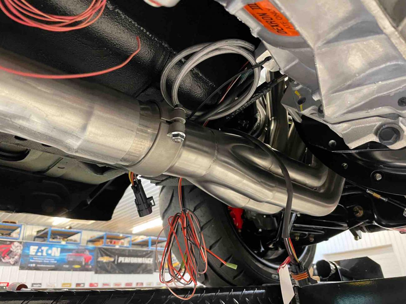 Attachment 73195 Attachment 73196 Attachment 73197 The headlights are also mounted and wired up. These headlights are LED units with halos. The halos shine white most of the time, so they serve as daytime running lights when headlights are off. When the headlights are on, I can either leave the halos on or switch them off - I have them wired to a virtual switch on the Holley pro dash. When turn signals are activated, however, the halos shine amber and blink with the turn signals. Pretty cool, and excited to see them in action. Attachment 73198 Attachment 73199 Attachment 73200 We also got the radiator back from powder coating and it turned out great! We powder coated the tanks, top, bottom and sides. The fins weren’t powder coated in traditional way, but coated in a very thin coat of similar color to ensure no degradation of thermal transmission of the fins. We still need to deal with the radiator cap. We didn’t want to coat the cap as it has a rubber gasket that we were concerned about putting in the oven as part of the curing process. Instead, we’re going to have the cap coated with Cerakote, a product similar to a powder coat, but thinner and can be air cured rather than oven cured. Attachment 73201 Attachment 73202 We also got the catch can mounted. Went with a Mighty Mouse catch can. Will connect via a -8AN adaptor on the valve cover oil filler. We had to modify the fuel rail cover - drilled a hole and will connect a 90 degree elbow fitting with push lock hose that will connect to the catch can. Other line out of the catch can will plug into nipple on the intake manifold. Attachment 73203 Kurt had moved the Nova on to a four post lift as we’ll be working on the exhaust next. Was cool to get under the car and see some of the work close up. QA1 carbon fiber driveshaft installed, and good look at the aluminum center section 9 inch rear end. Attachment 73204 https://uploads.tapatalk-cdn.com/202...c50bd1347c.jpg Was able to get a few pics of the inner wheels.. calipers clear, but not by much! https://uploads.tapatalk-cdn.com/202...24da2afb99.jpg https://uploads.tapatalk-cdn.com/202...4918bdbc9b.jpg Got a nice view of some of the wiring that was done under the car. I mentioned previously that the C6 Corvette PWM fan unit is wired with a nice splitter harness from Vintage Air that splits the output signal from the fan control unit in two into pigtails that plug directly into the Spal fan pigtail harnesses. Works awesome... we will need to secure the harnesses so that they don’t block the air flaps in the shroud, but is super clean. https://uploads.tapatalk-cdn.com/202...1990347cac.jpg I also installed multiple temperature sensors to monitor oil temps and power steering fluid temps. My C&R radiator has oil and power steering coolers. We wired in temperature sensors in the input and output lines so that we can monitor oil and power steering fluid temps as they enter the cooling unit and after they exit the cooling unit. Because these all feed the digital dash (rather than a physical gauge), it is easy and inexpensive to monitor this data in a digital environment where you don’t need physical gauges. https://uploads.tapatalk-cdn.com/202...e509b6dd3c.jpg https://uploads.tapatalk-cdn.com/202...ae47a1847b.jpg A couple of under car shots where you can see where we will run the exhaust from the headers... https://uploads.tapatalk-cdn.com/202...c0c816a703.jpg https://uploads.tapatalk-cdn.com/202...3ba79be300.jpg For exhaust, I’m using Spintech oval tubing from the headers to an X-pipe to their 3000 series mufflers. The oval tubing is 3 1/2” wide and 2 1/4” tall, and the equivalent to 3” round tubing. The oval tubing will give us a little more ground clearance to tuck the exhaust up tighter to the floors. The mufflers are oval inlets and 3” round outlets. The round tubing will exit the mufflers and go over the rear end, angle toward the back corner of the rear of the car (the fuel tank has clipped corners) and will exit near the rear bumper. System will be Tig welded together but for a handful of V band clamps to take it off in sections. Once completed, we’ll coat the exhaust black. You can see one of the mufflers, the X-pipe and other oval tubing in the photo below. The exhaust components are sitting on lift in front of the rear tire. https://uploads.tapatalk-cdn.com/202...1f0838b8b5.jpg A handful of shots of the Nova on the lift. First time it’s had front fenders on it in a long, long time. Kurt adjusted the front shocks and the rake is pretty close... looks great! We’ll tweak it again after all fluids are in and weight is settled in. https://uploads.tapatalk-cdn.com/202...cd57b665e4.jpg https://uploads.tapatalk-cdn.com/202...7dbd18c65a.jpg https://uploads.tapatalk-cdn.com/202...86f9c71758.jpg https://uploads.tapatalk-cdn.com/202...40801c8334.jpg https://uploads.tapatalk-cdn.com/202...7b1368229c.jpg Great to see the continued progress! PFTE fuel line should be in this week and will be installed. Also, as mentioned above, exhaust will be a priority this week as well. Stay safe, Brian Sent from my iPad using Tapatalk |