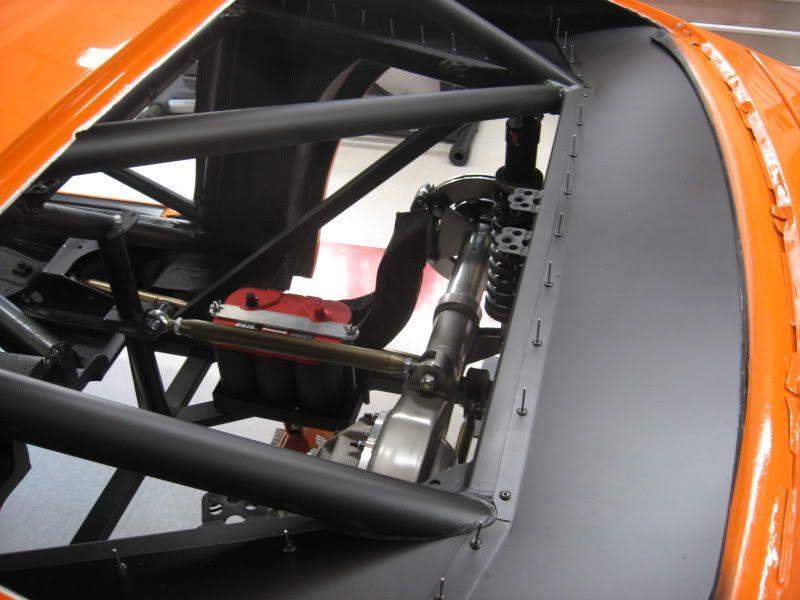 The brakes were installed but plumbing still to do. http://i80.photobucket.com/albums/j1...b/IMG_3684.jpg Aluminum paneling installed. http://i80.photobucket.com/albums/j1...b/IMG_3682.jpg Drive shaft loop installed. http://i80.photobucket.com/albums/j1...b/IMG_3693.jpg http://i80.photobucket.com/albums/j1...b/IMG_3689.jpg Transmission cover installed. It is removable with zeus fasteners. http://i80.photobucket.com/albums/j1...b/IMG_3695.jpg http://i80.photobucket.com/albums/j1...b/IMG_3696.jpg Electrical and brake plumbing is the next step. http://i80.photobucket.com/albums/j1...IMG_3644-1.jpg |