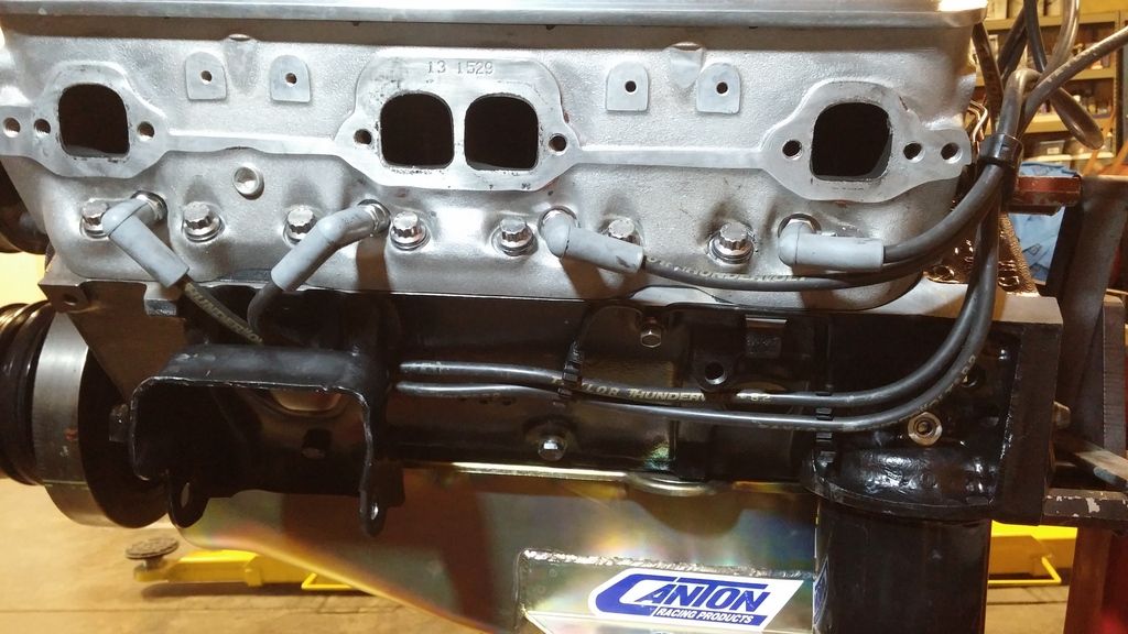 I never toss stuff like that - you never know who might need them. Brackets can be modified for whatever. I run all my plug wires under the headers. Seems to be way less heat as the heat rises... |