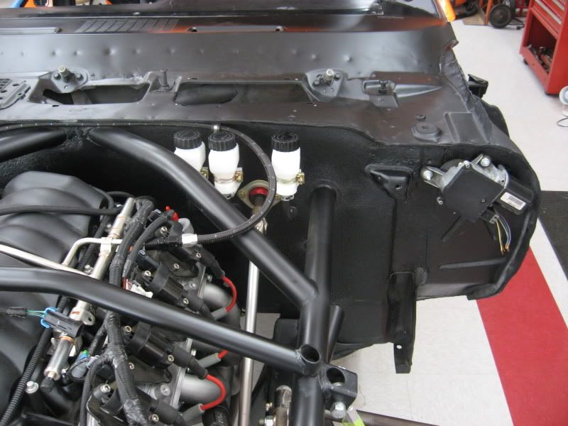 Here are a few photos of some of the progress made this past week. The fuel cell and line to the motor are done. http://i80.photobucket.com/albums/j1...b/IMG_3708.jpg http://i80.photobucket.com/albums/j1...b/IMG_3711.jpg http://i80.photobucket.com/albums/j1...b/IMG_3707.jpg The wiper motor was relocated to the far end of the firewall. Custom linkage was made to hook up to the original wipers. The brake and clutch reservoirs were also installed on the firewall. http://i80.photobucket.com/albums/j1...b/IMG_3706.jpg The holes for the gauges were cut. Next are the switches in the next couple days. After that, the dash will get textured and painted. http://i80.photobucket.com/albums/j1...b/IMG_3712.jpg |