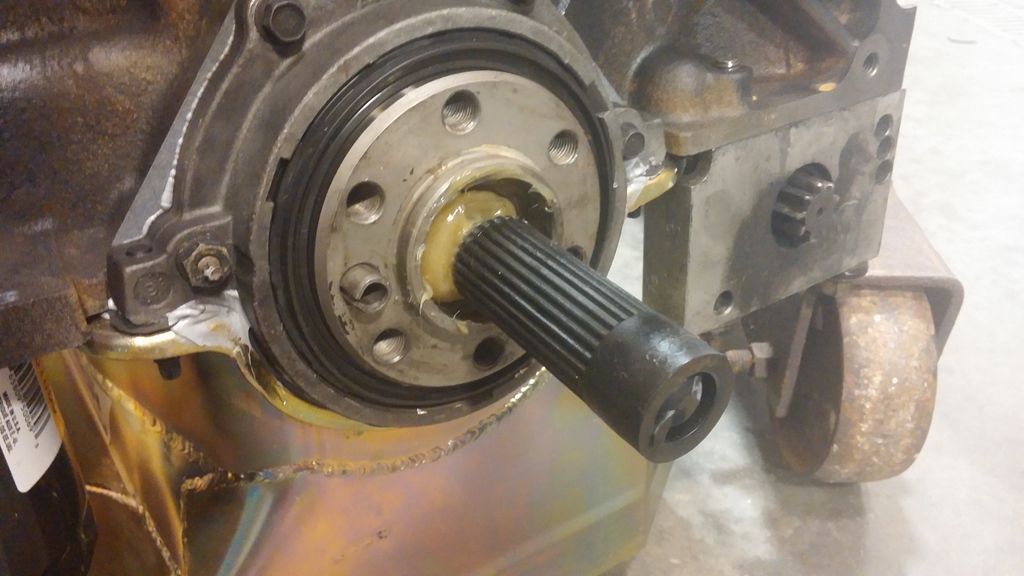 http://img.photobucket.com/albums/v3...ps0wcfxekl.jpg Over the past few days I replaced the motor mount inserts, removed and rinsed the radiator, over flow and heater core and cleaned up a bit of the wiring. Today my job was to replace the pilot bearing and install the engine. I'm almost 50 years old and I still find things that I am doing for the first time, this was one of those. A great resource for this is YouTube...I must have watched about 6 or 7 videos of people removing pilot bearings by packing some sort of crap inside the bearing, pounding a bolt in and the crap forces the bearing out of the crank. Eff That!! I spent over an hours first trying this with wheel bearing grease, then resorting to bread... Eventually I was so pissed, I drove up to O'Reilly, rented a pilot bearing removal tool and after setting it up it literally took me less than 30 seconds to remove the bearing. Before starting http://img.photobucket.com/albums/v3...pskxfktcfb.jpg End of crank full of grease and clutch alignment tool used as a punch http://img.photobucket.com/albums/v3...psqneu8kga.jpg All of the grease just flowed back out through the needle bearings. Let's try bread... http://img.photobucket.com/albums/v3...psdy4uphgd.jpg Finally got smart http://img.photobucket.com/albums/v3...ps4yzelyqo.jpg 30 seconds later...waa laa... http://img.photobucket.com/albums/v3...pspuwhz0ko.jpg After that, things went pretty smooth. Just took my time, went slow, made sure that the changes I made would work without issue. http://img.photobucket.com/albums/v3...psldlipoxq.jpg The engine is bolted in place, clutch installed, and starter wired up. Tomorrow I'll tidy up a few more new wire changes, drop the headers in...then maybe get the trans installed. But for now, here she sits... http://img.photobucket.com/albums/v3...pssyyc37el.jpg |