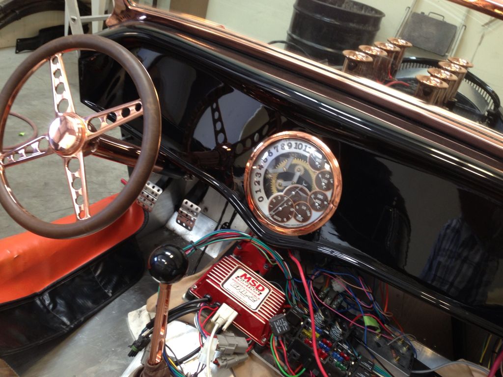 I will tell you that pics don't do it justice at all. This think is sick. http://i855.photobucket.com/albums/a...psfe019017.jpg http://i855.photobucket.com/albums/a...psb6c52190.jpg http://i855.photobucket.com/albums/a...ps46c68b16.jpg http://i855.photobucket.com/albums/a...psb81060df.jpg The brass on the black with brushed aluminum is perfect. It's very hard to see in the pics but every rivet and tiny screw is brass too. And that gauge cluster is a work of art. |