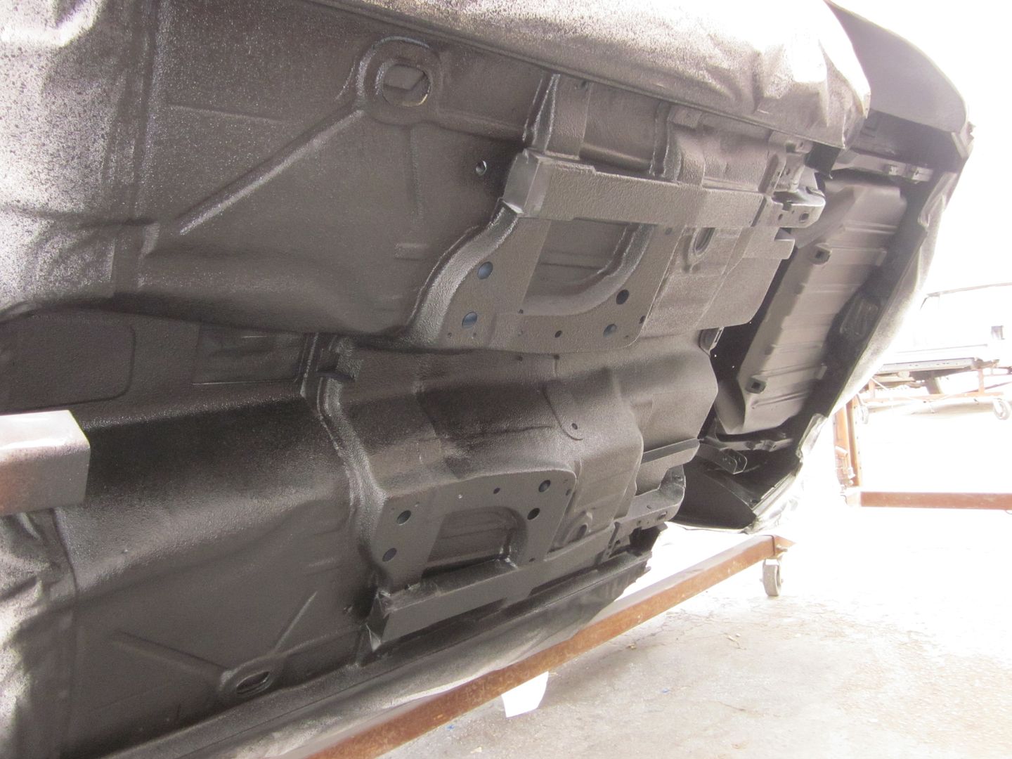 No Blu yet! I am behind schedule.. We had to block & primer the car two more times till if felt it was good for paint.. The boys have been @ it all week.. They even came in @ 6 AM this morning to get the car undercoated & painted on the underside.. next paint the interior & trunk.. then paint firewall.. then the top dash.. wet sand & paint.. Tuesday! I hope..