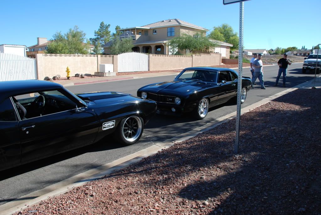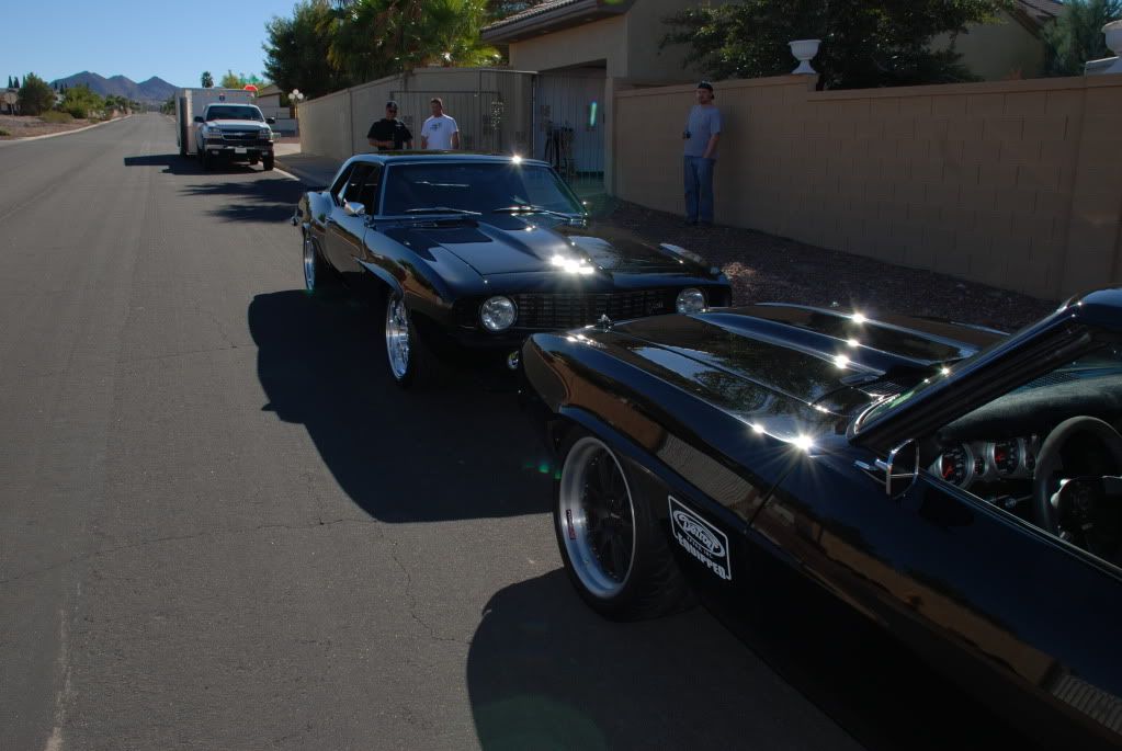My car's ready for SEMA tomorrow. I had a visit from Luke Mau, Rich Bromelia, and Eric.(Owner) They stopped by to do some detailing and throw a coat of wax before they took it down to SEMA today. Luke really laid a nice paint job on the car and it's a really clean build. I wish we could've cruised them and tore up some asphalt. Nothing like two sinister black 69's. :thumbsup: