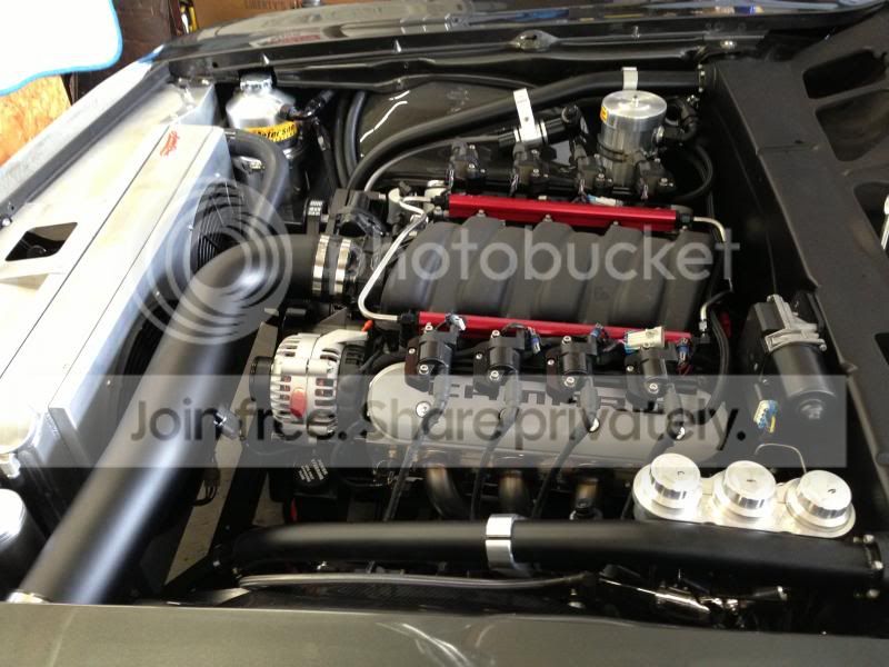 Man work gets in the way of fun! I just got back tonight from a six day business trip. Successful - and I'm not complaining - but it looks like I'll need to be on the road quite a bit through the middle of August. Se la vie. I have a couple of pics of what should be the complete engine bay. The harness is unplugged and so are the plug wires on the driver's side. Pretty sure we chased all the gremlins, so I hope to follow Jeff and fire this baby soon! http://i885.photobucket.com/albums/a...ps34a6ec95.jpg http://i885.photobucket.com/albums/a...ps38f3905d.jpg The shock resi brackets need to be adjusted along with organizing a couple of other lines for cleanliness, but if she runs (!), next stop is header-back exhust fab. I have a pretty good idea how that should go, but it all depends on what fits. |