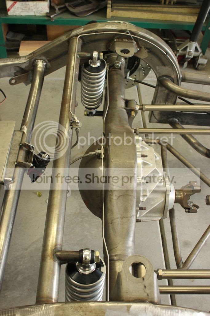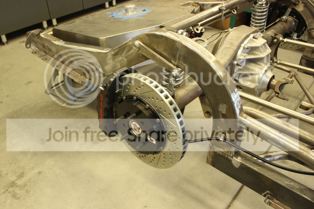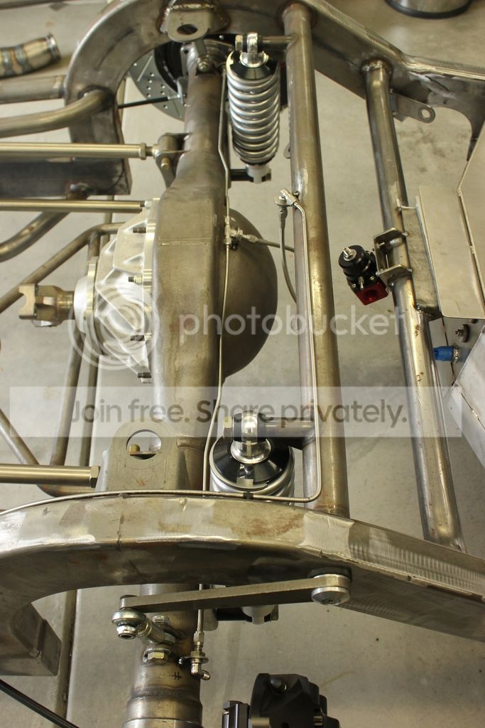 The only thing I would "question" is the T placement for the rear brakes. I wonder if this placement wouldn't cause a slight engagement bias to the passenger caliper before fluid is pushed across to the driver side. These t's are normally centered in the car... IDK -- but I'd look into it. I didn't realize this was being built as a straight line car?? That 4 bar link will bind up like crazy in any corner. I know this from building my brother in laws Pro Street car. It just doesn't like to turn. Rides great! But just don't ask it to lean into any turn. |