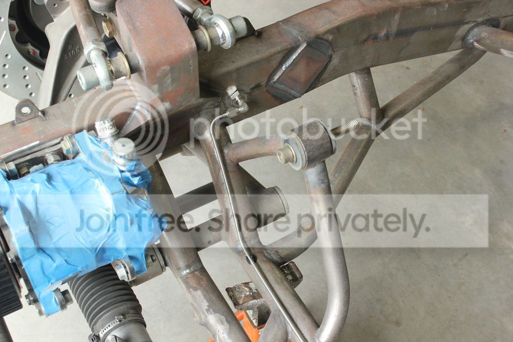 Thanks for props Greg! In regards to the T, I don't think it's an issue. I looked at quite a few different builders and have actually seen some put the T on the driver side by the coilover and then run a line to the pass side. Maybe an optical illusion, but my T is centered. I just double checked the measurements and I'm within 1/8" from the T to each caliper. I know what your saying about the rod ends on the 4 bar also. I bought this frame (I'm embarrassed to say.. Lol!!) 11 years ago, and we know how far technology has evolved since. I'm going to swap the ends for either Johnny joints or have DSE make me some swivel links. Appreciate the input!! I'm always open for suggestions.
