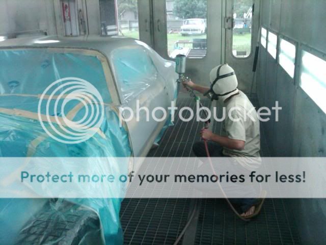 Chad Fletcher here live from the booth. Three coats of base are down. Now the "candy" mid coat and on to clear. We got it jambed on sunday and back together and in the booth last night. Started spraying tonight around six. Its gone a be a long night. Anyone got a redbull?