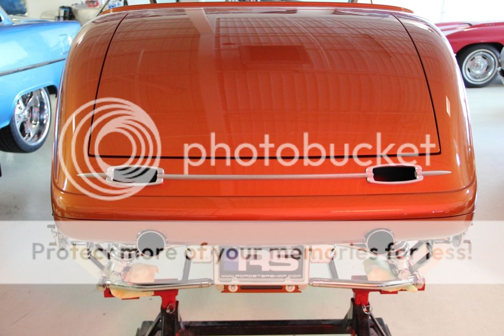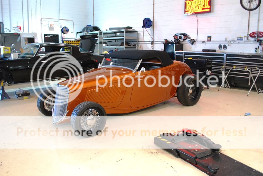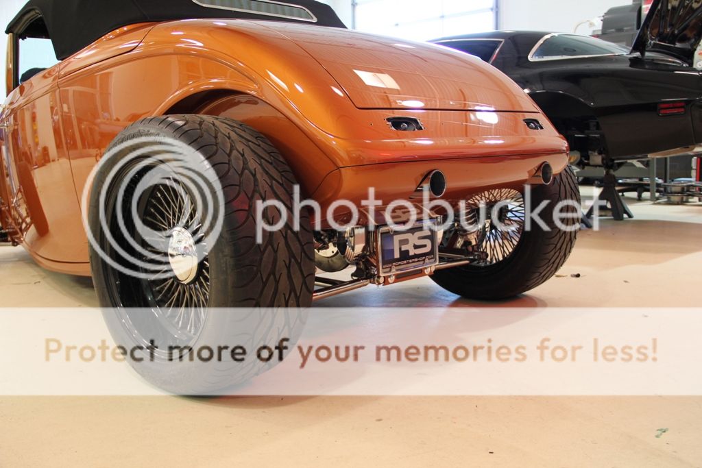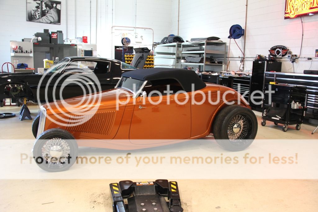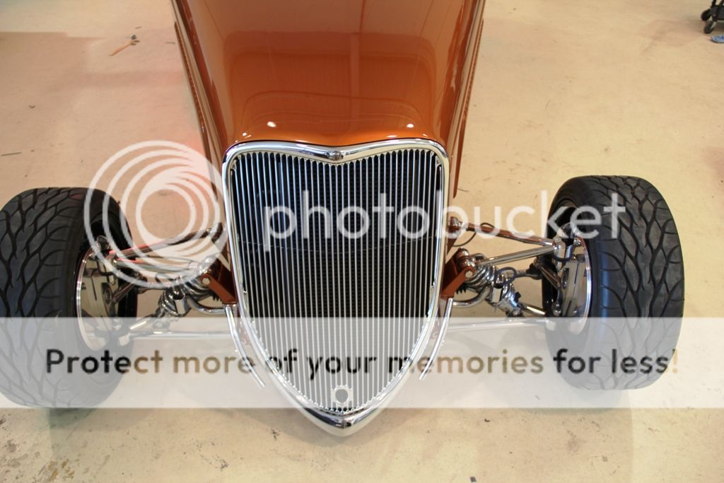 The top will be re-upholstered to a charcoal color and the wheels will be changed to Billet Specialties Bonneville G's. The wheels on it are just rollers for the time being... although it looks really tough with the black and stainless wire wheels! http://i563.photobucket.com/albums/s...ps614845c7.jpg[/URL] http://i563.photobucket.com/albums/s...ps40c395a1.jpg[/URL] http://i563.photobucket.com/albums/s...ps0bfb952c.jpg[/URL] Roush SBF with Fast EFI that is good for 450-500 HP. Should make this little car a blast to drive. http://i563.photobucket.com/albums/s...ps991f24dd.jpg[/URL] http://i563.photobucket.com/albums/s...ps7279ee5e.jpg[/URL] Chopped stock 33 shell with the radiator cap removed. Thanks to Advanced Plating for the killer chrome work! (Need to do the alighment before we install the headlights) http://i563.photobucket.com/albums/s...ps884560ef.jpg[/URL] |