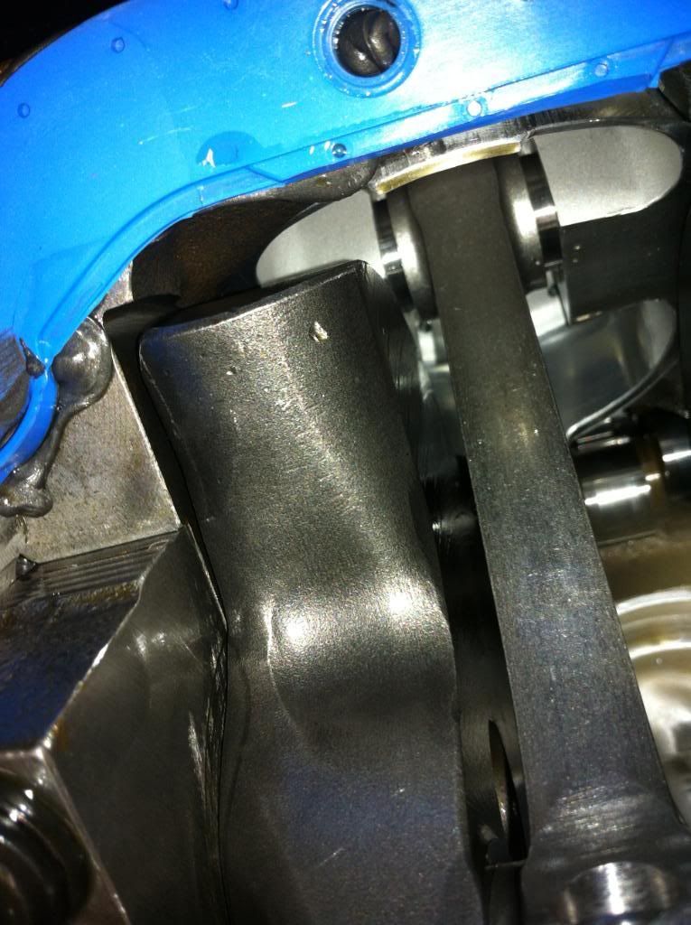Hmm you didn't tell me you pulled a main cap, or two. :_paranoid I'm guessing the look of the bearing made Mike feel good about the build. That and the Callies cast into the arm of the crank.:D