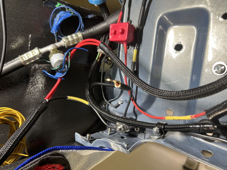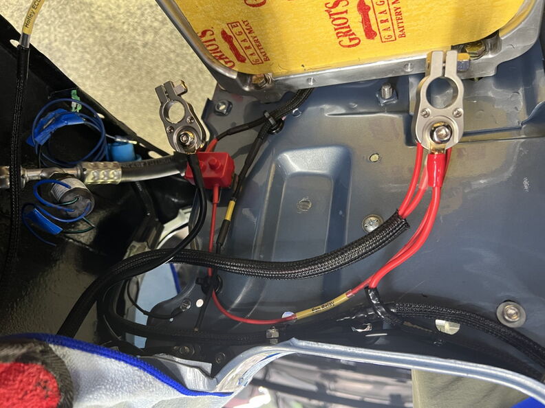 http://garagescene.net/_data/i/uploa...31785eb-me.jpg I am going to remove the mock up wiring and replace it with the 6AWG wire. http://garagescene.net/_data/i/uploa...e4cbeed-me.jpg I also move the Holley ground wire to the remote shut off. http://garagescene.net/_data/i/uploa...89f7865-me.jpg http://garagescene.net/_data/i/uploa...f695a28-me.jpg The wire was a little long and the lug for the batter was just a little bit big. http://garagescene.net/_data/i/uploa...d52a461-me.jpg http://garagescene.net/_data/i/uploa...bf770ab-me.jpg http://garagescene.net/_data/i/uploa...3389f8d-me.jpg http://garagescene.net/_data/i/uploa...b93af82-me.jpg |