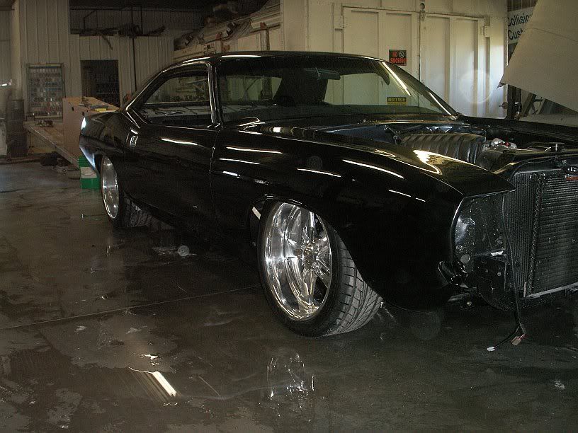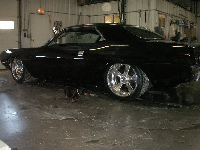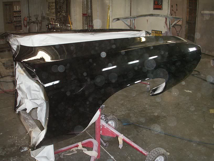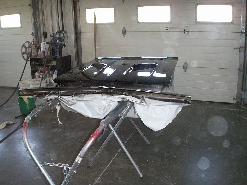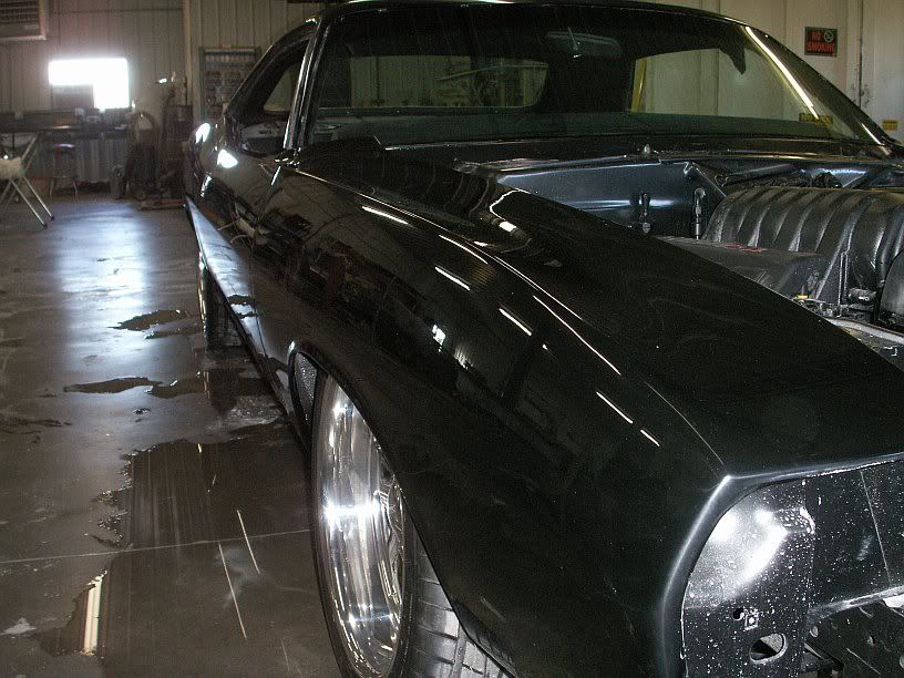 well my finger prints are gone now and all I have to show for it is some shiny paint, wow is black a pain. Its been awhile since I posted but we've been busy as hell, here's what been going on. It runs (yeah) I painted everything besides the roof and the trunk, due to the summer being almost over thats all I'm going to do with it for now and try to get it on the road and work the bugs out, I'm going to put the stripes on it this week and shave the door handles and drip rails this winter, but enough talk heres some pics. We'll be at the madison goodguys show on aug 15-17. see ya telly