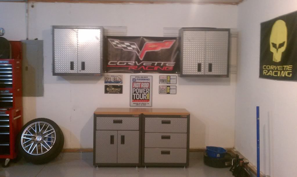 My 90 pound box from Sears finally showed up today - 4 days after it was going to get here! I ordered this cabinet almost 10 days ago! So I spent a few hours assembling my last Gladiator brand cabinet - then put the top on it that I picked up at Lowe's - who price matched an internet deal, they had it for $129, I found it on the web for $79, score! Also - not to self - I ordered this shelf from the Sears store, and they shipped it to my house for free. That was all fine and dandy, but there was a nice sized hole in the box, and both rear panels where dented. If it was the front panel I'd be pissed - but it was the rear. So 10 mins with a hammer and a nice sized piece of wood I knocked the panels back into shape. Besides that it went together pretty smoothly. I have some florescent recessed lights to put up, I'll put those up some time later. After that I think my garage will be done for awhile. http://i305.photobucket.com/albums/n...e/IMAG0619.jpg |