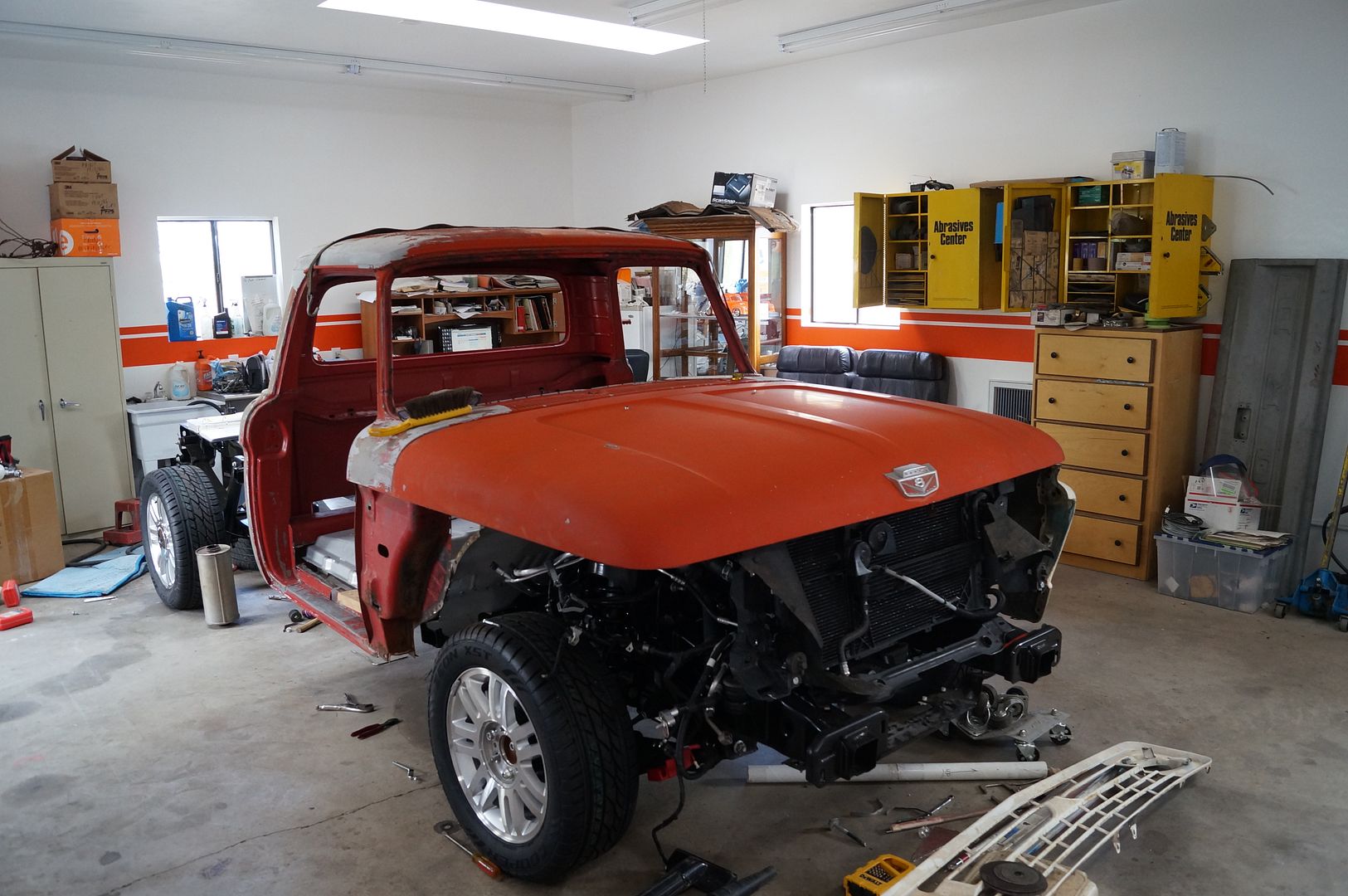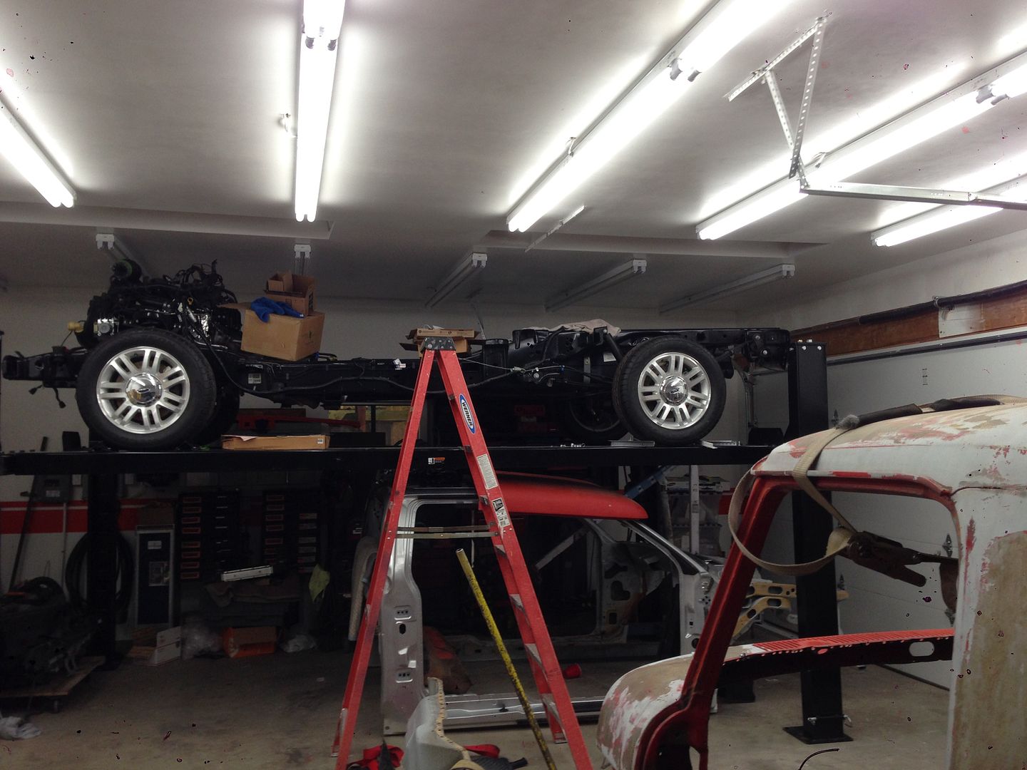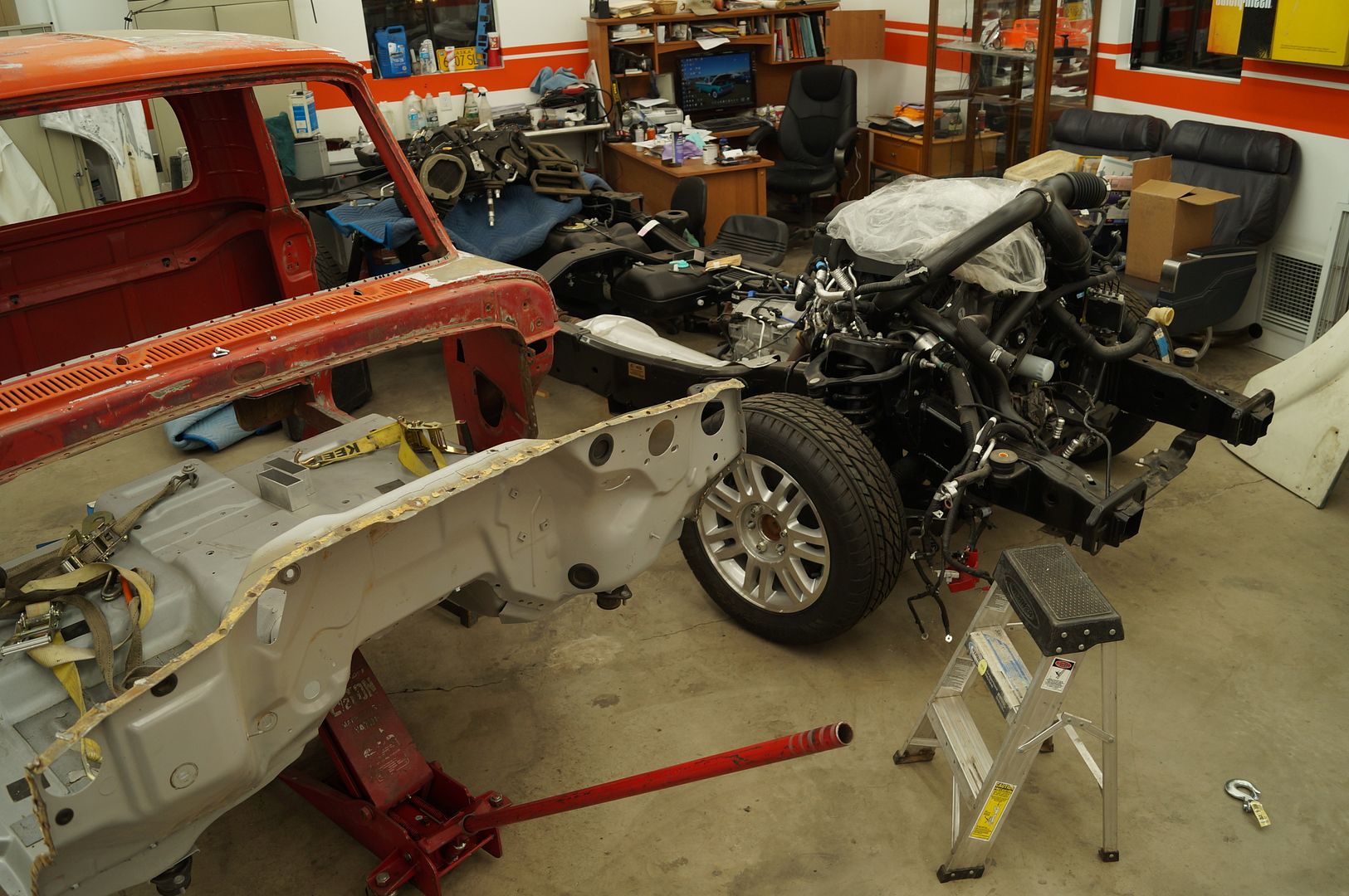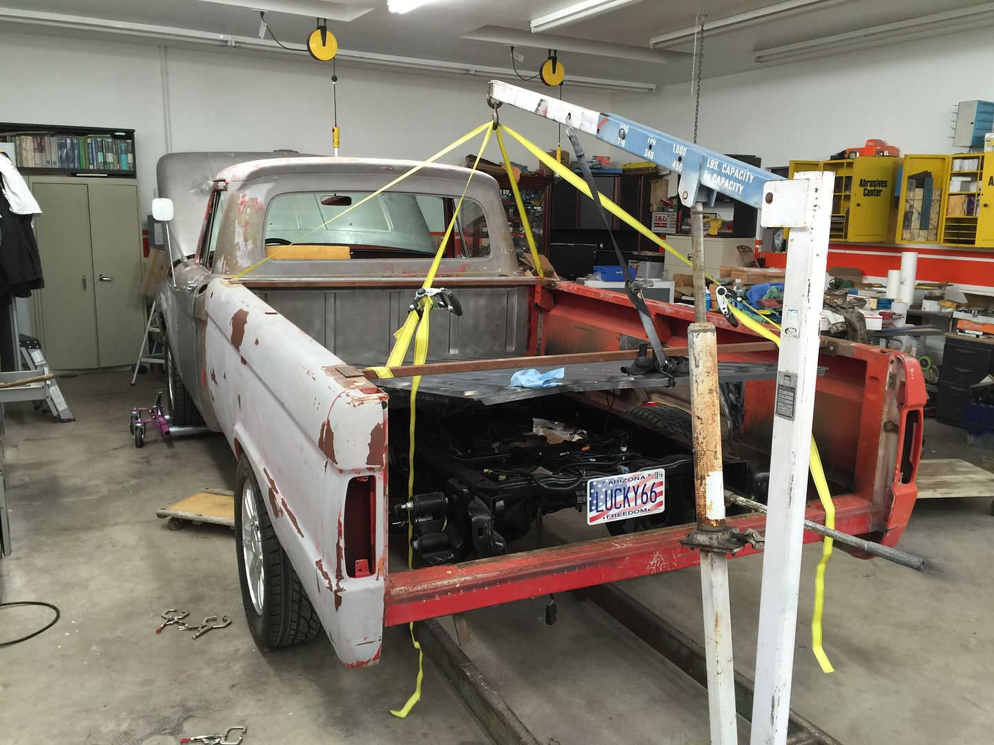 http://img.photobucket.com/albums/v5...ps6394c7d7.jpg http://img.photobucket.com/albums/v5...ps0f5d8f2f.jpg It took days/wks just to find proper location for cab on chassis http://img.photobucket.com/albums/v5...psbca19576.jpg Of course then fitting box to new chassis was also a huge job http://img.photobucket.com/albums/v5...ps9fa04c95.jpg Decided to make attempt at installing the new F150 floor and firewall into the '66 Cab http://img.photobucket.com/albums/v5...psb511ce17.jpg http://img.photobucket.com/albums/v5...psaf69ce36.jpg Along with the new dash. Because of all the electronics they simply would not fit in the tiny '66 dash http://img.photobucket.com/albums/v5...g/IMG_7585.jpg Bought a new 4 post hoist to help with my builds. http://img.photobucket.com/albums/v5...g/DSC04091.jpg |