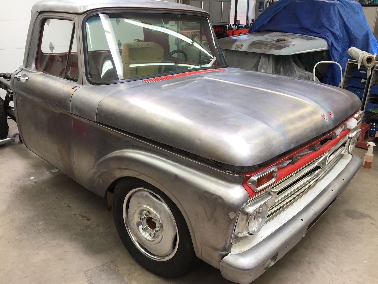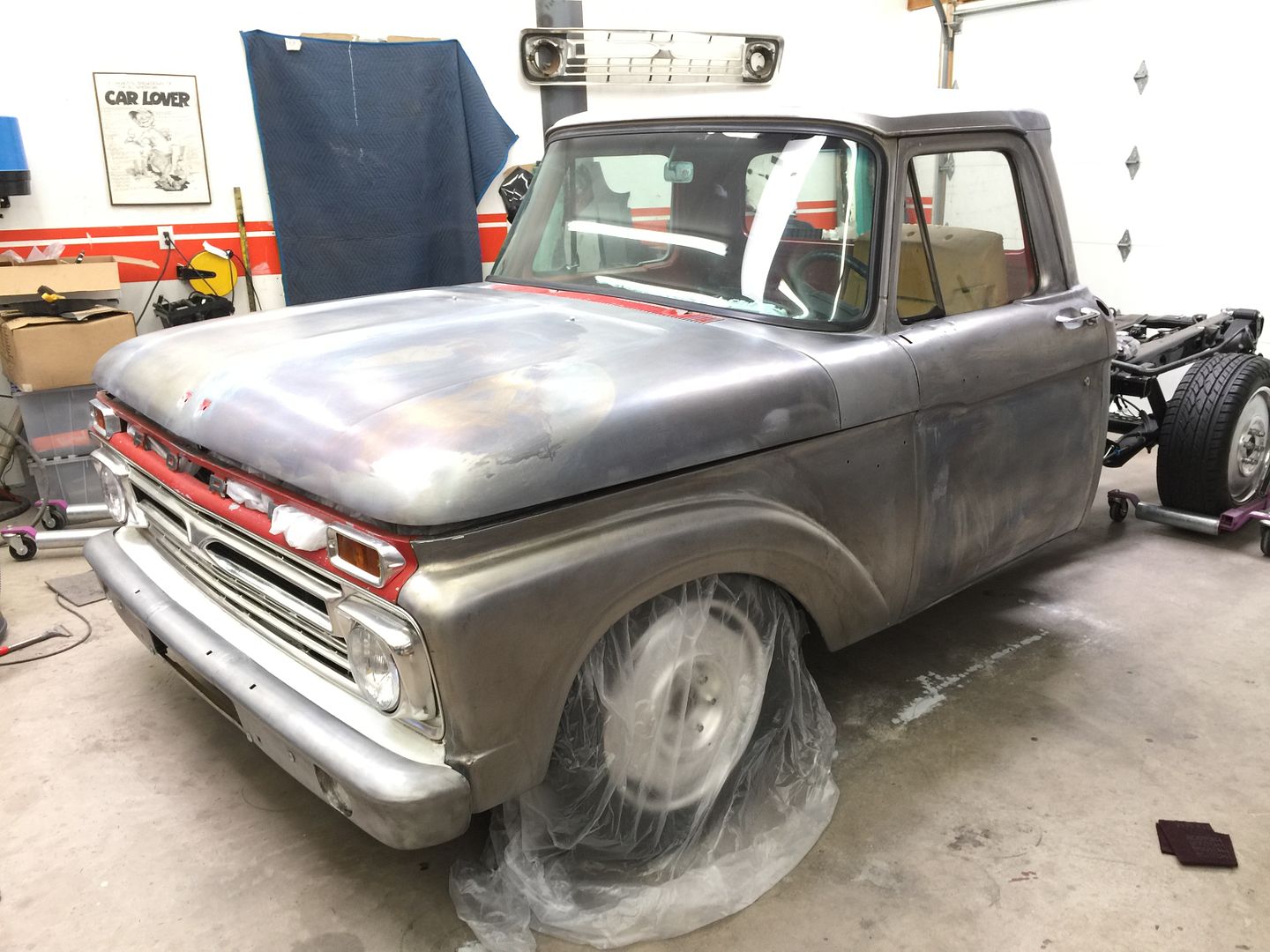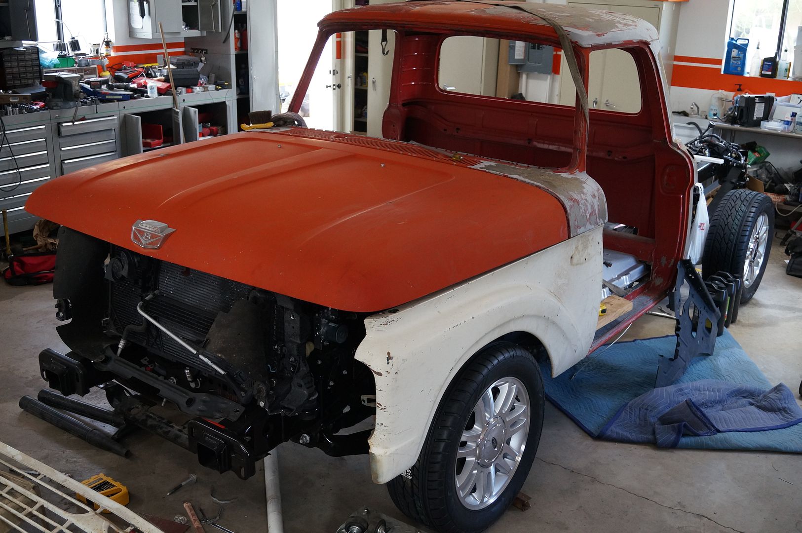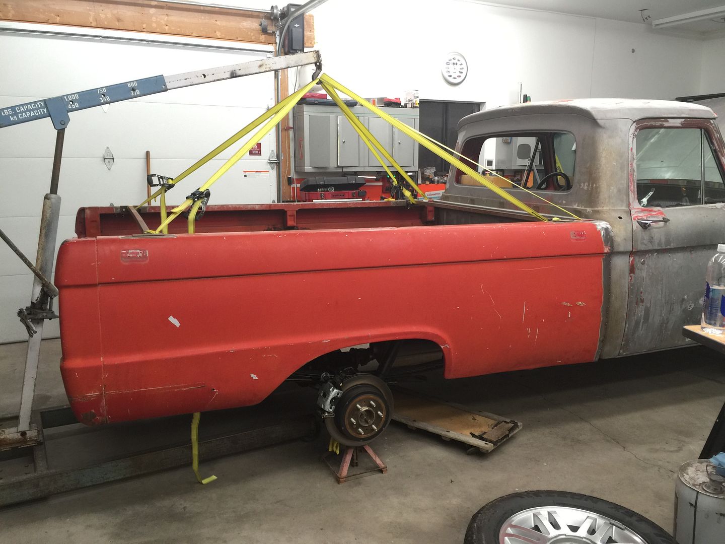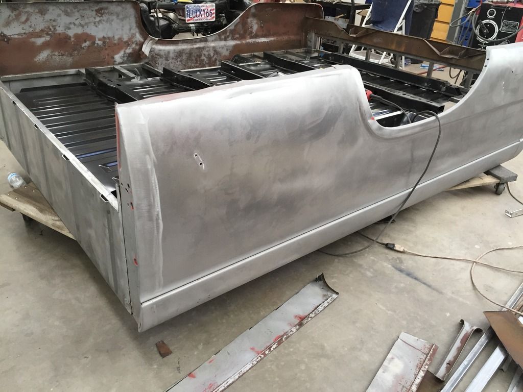 http://img.photobucket.com/albums/v5...ps6394c7d7.jpg http://img.photobucket.com/albums/v5...ps0f5d8f2f.jpg It took days/wks just to find proper location for cab on chassis http://img.photobucket.com/albums/v5...psbca19576.jpg Of course then fitting box to new chassis was also a huge job http://img.photobucket.com/albums/v5...ps9fa04c95.jpg Decided to make attempt at installing the new F150 floor and firewall into the '66 Cab http://img.photobucket.com/albums/v5...psb511ce17.jpg http://img.photobucket.com/albums/v5...psaf69ce36.jpg Along with the new dash. Because of all the electronics they simply would not fit in the tiny '66 dash http://img.photobucket.com/albums/v5...g/IMG_7585.jpg Bought a new 4 post hoist to help with my builds. http://img.photobucket.com/albums/v5...g/DSC04091.jpg |