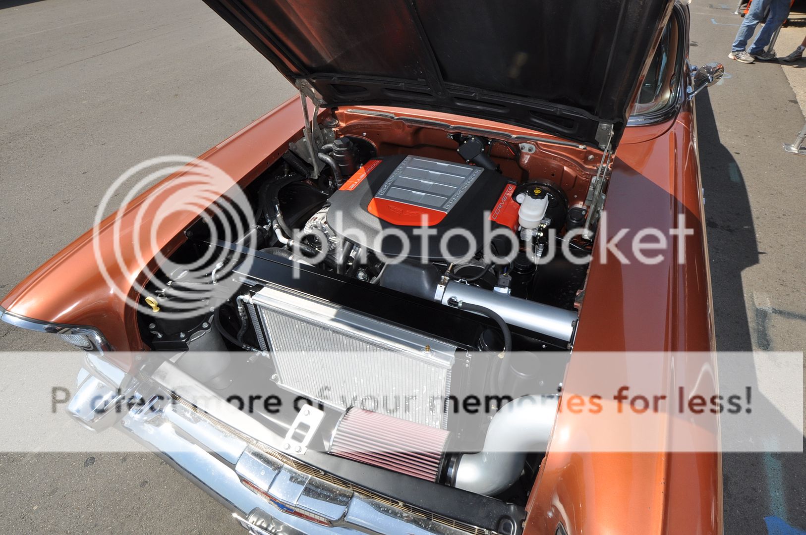 Here are some pictures of Greg Heinrich's 8600 original miles 57 Chevrolet. It has carbon brakes and an LS9. It weighs 3800 lbs. Neil has the car super slammed right now but plans to raise it up to make it more user friendly on the public roads. Greg liked the handling and solidness of the ride that he ordered a frame for a 1970 Chevelle this weekend while in Columbus. Enjoy these pics